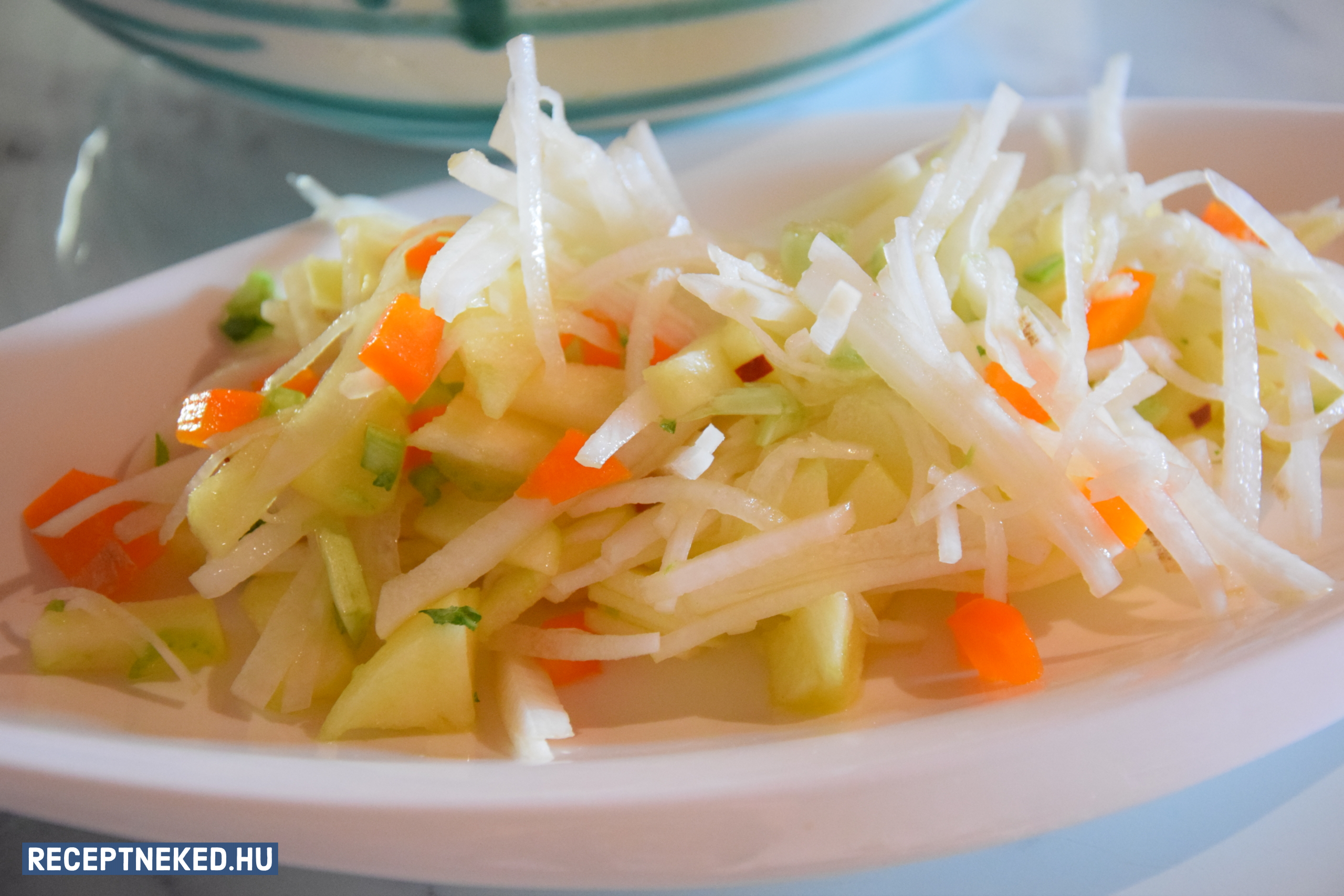 Néhány órara tegyük hütőbe, hogy az ízek összeérjenek. Ekkor kóstoljuk meg és ízesítsük még, ha szükséges.