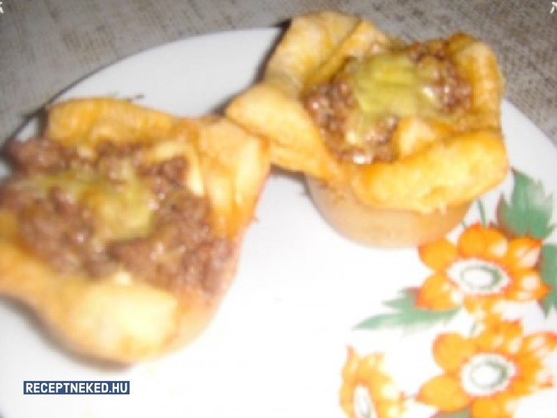 A leveles tésztát kihajtogatjuk (ha nem előre nyújtottat vettünk, akkor kinyújtjuk kb 5 mm vastagra) és kb 5,5-6 cm átmérőjű pogácsaszaggatóval korongokat szúrunk ki belőle.