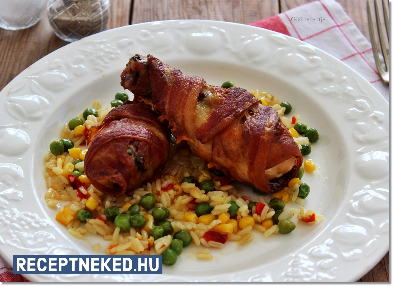 Bacon alatt sült tarjaszelet gombás rizzsel recept