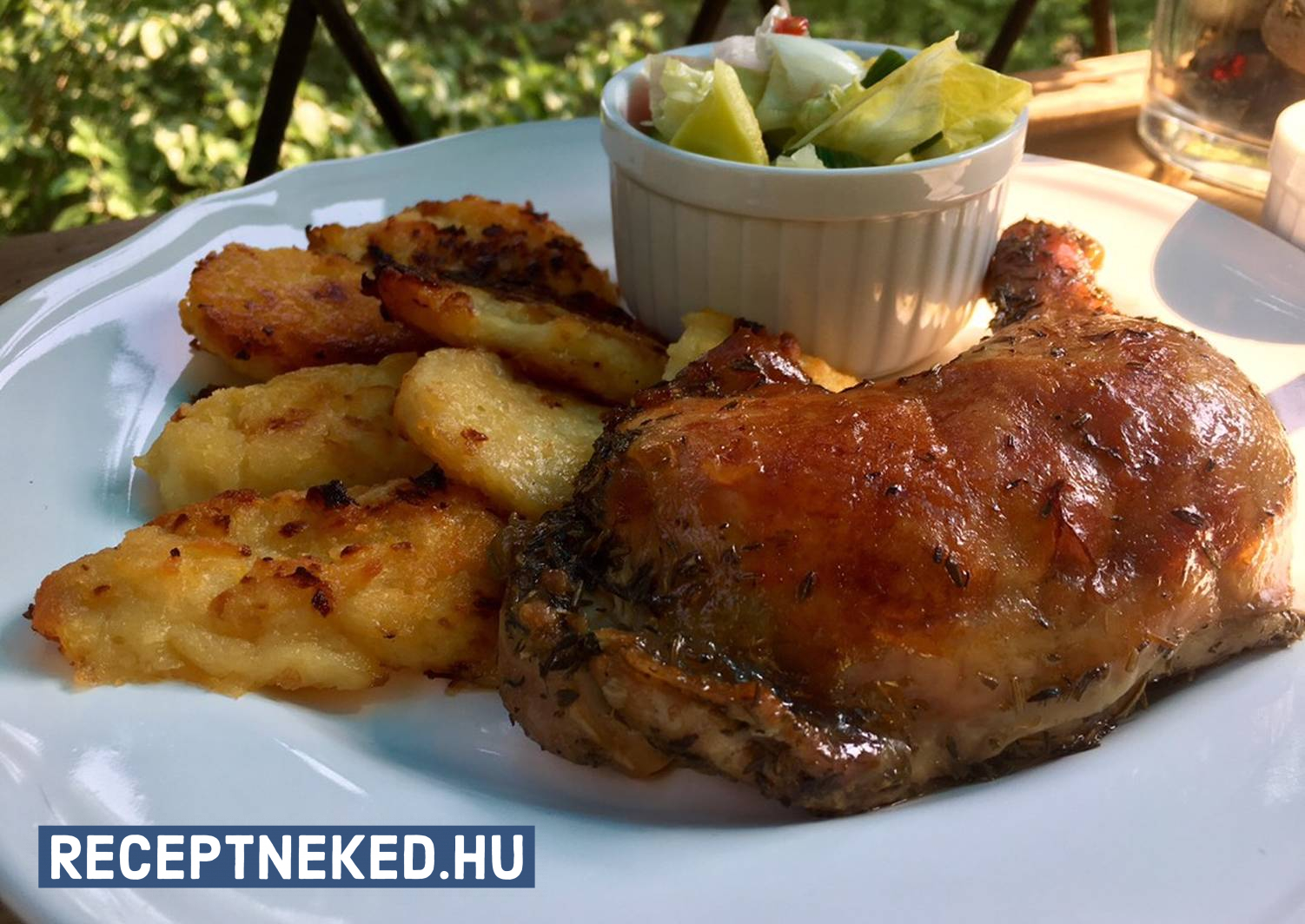 Tálaláskor a szaftosra, pirosra sült oldalast a sült krumplival, és ízlés szerinti salátával kínáljuk.