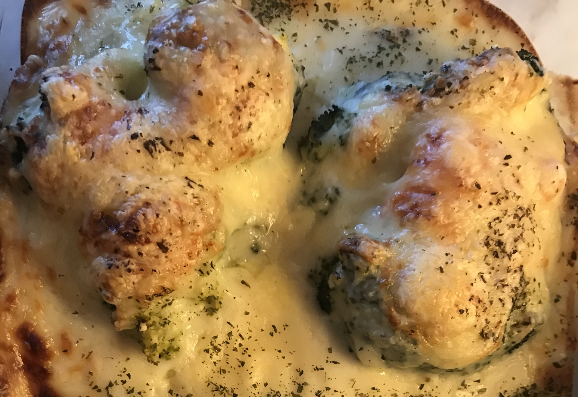 Előmelegített sütőben kezdem a sütést nagyjából 180 fokon. Ha a hús megpuhul, kicsit még pirítom a tetejét, majd áthelyezem egy jénaiba.