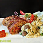 A húst szorosan csavarjuk fel, majd a külső felületét is szórjuk meg fűszerrel. Csavarjuk két réteg alufóliába és tegyük tepsibe.