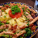 Tarhonyát készítettem mellé, házi savanyúsággal fogyasztottuk.