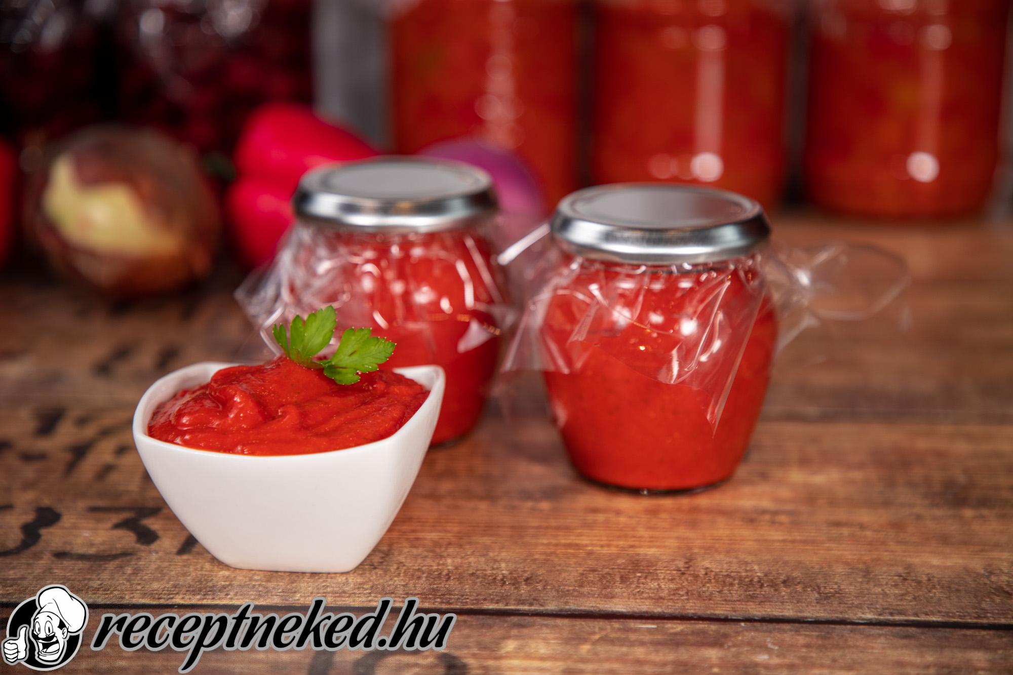 Az apróra vágott hagymát a zsíron üvegesre dinszteljük, félrehúzzuk, rászórjuk a fűszerpaprikát, hozzáadjuk a paprikakrémet és felöntjük (kb 1 dl) vízzel.