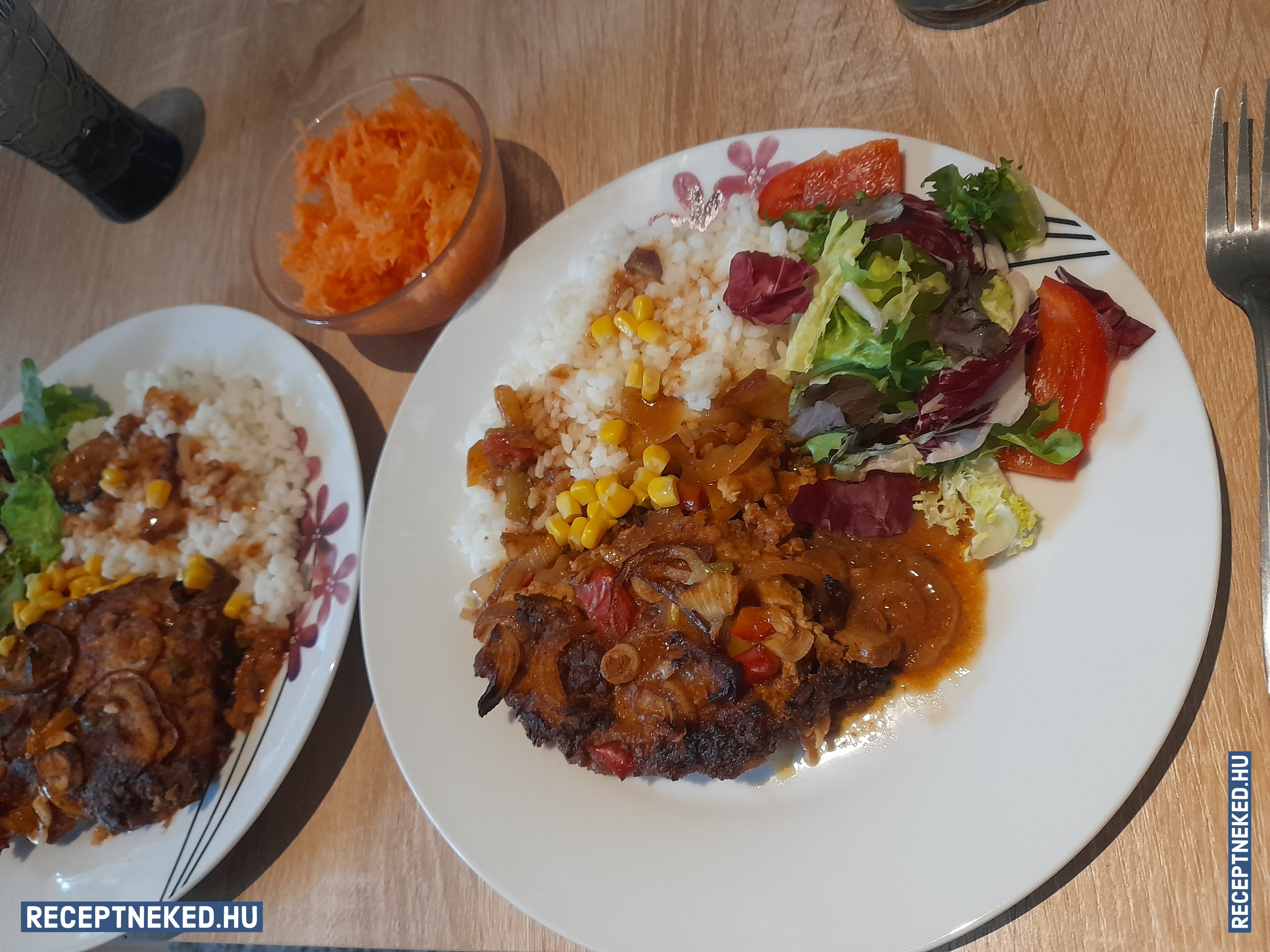 A visszamaradt zsiradékba tesszük a húsokat, majd sózzuk és borsozzuk, majd mikor az egyik oldalára kéreg pirul, akkor megfordítjuk és a másikra is kérget sütünk, közben a felül lévő oldalát sózzuk és borsozzuk. Mielőtt elkészülne a hús, előtte hozzáadjuk a fokhagymát és azzal is pirítjuk kicsit.