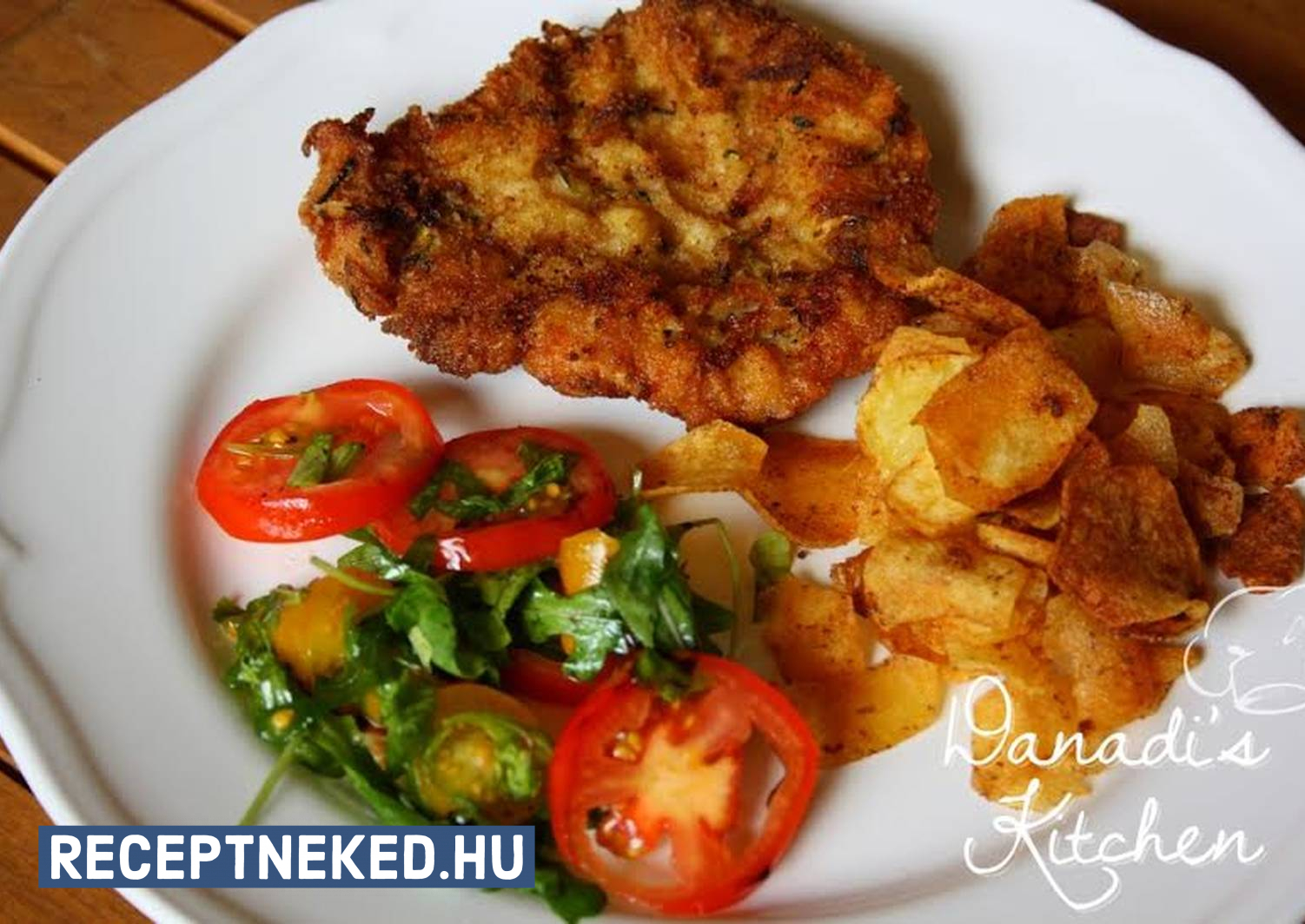 A húst felszeleteljük és kiklopfoljuk. Mindkét oldalán besózzuk, majd következik a reform bunda.