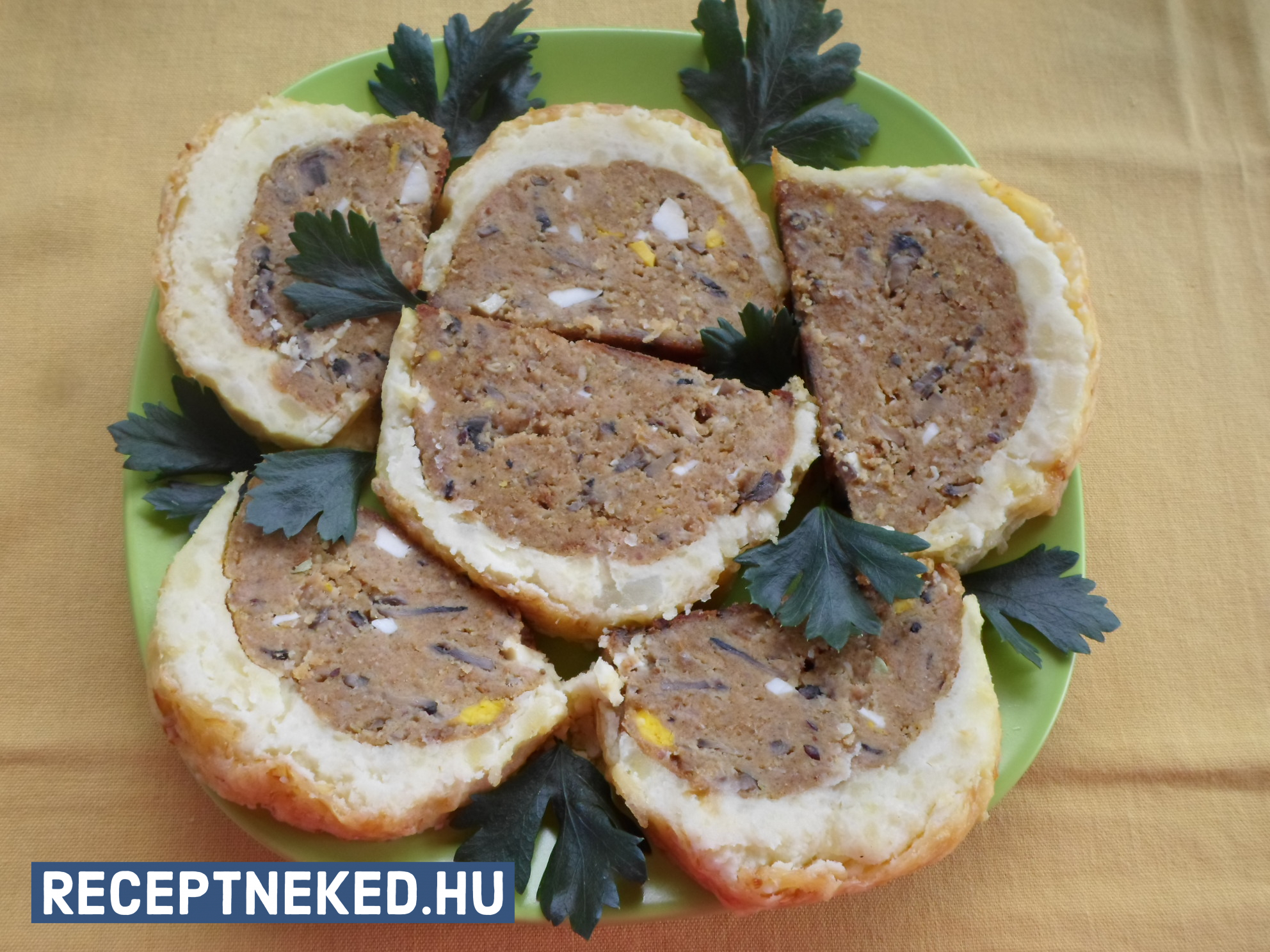 A fasírt tetejét felvert tojással lekenjük és készre sütjük 180 fokos sütőben.