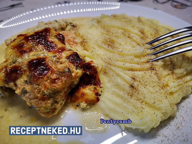 Még melegen belekeverjük a reszelt sajtot. A sajt megolvad és összefogja a töltelékünket.