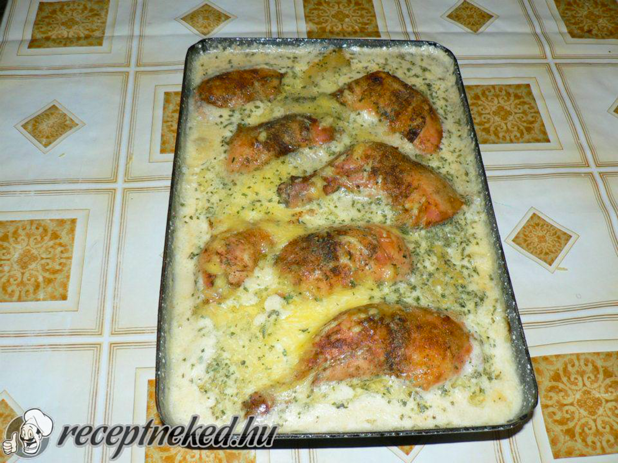 Helyezzük be előmelegített sütőbe, majd közepesnél kicsit magasabb hőfokon süssük szép pirosra (sütés közben a húst fordítsuk át, hogy mindkét oldala szép pirosra süljön).