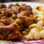 Főtt csőtésztával és csemegeuborkával tálaljuk.
