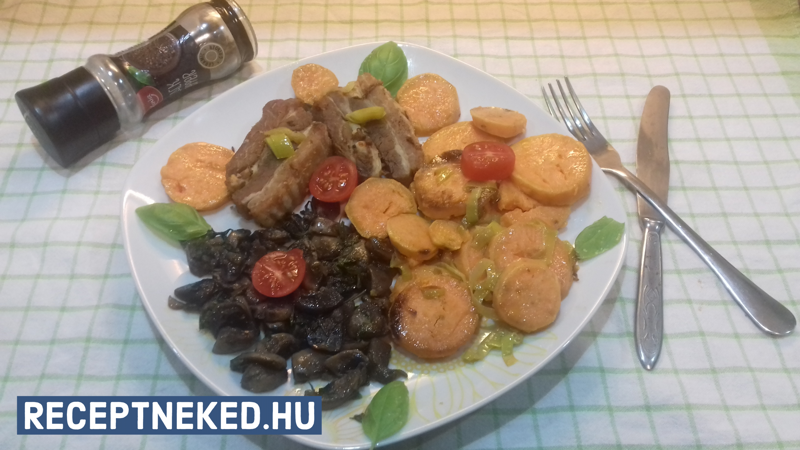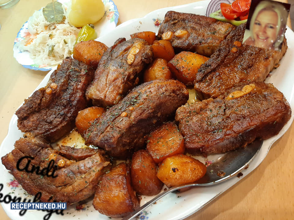 A sülés végén a fedőt levesszük és jó pirosra sütjük a húsokat.