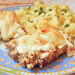 Egy tepsibe öntsük bele a hagymás-tejfölös szósz felét, majd helyezzük rá az elősütött hússzeleteket, majd öntsük rá a maradék szószt és fedjük le alufóliával a tepsit.