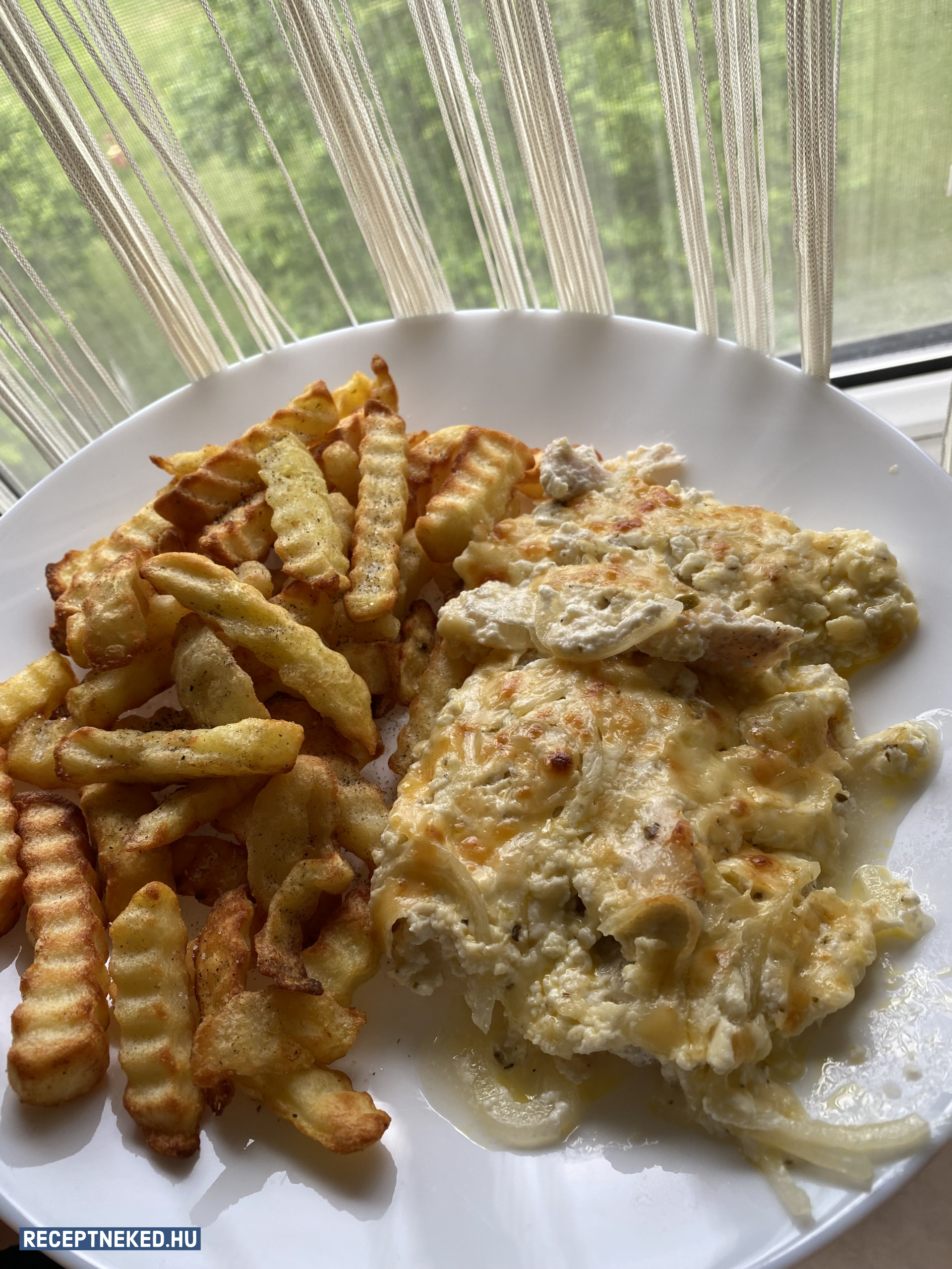 Egy tepsit vajjal kikentem. A húsokat tepsibe tettem és tejföllel megkentem. A paprikakrémből itt-ott tettem rá és sajttal befedtem. Alufóliával betakartam.