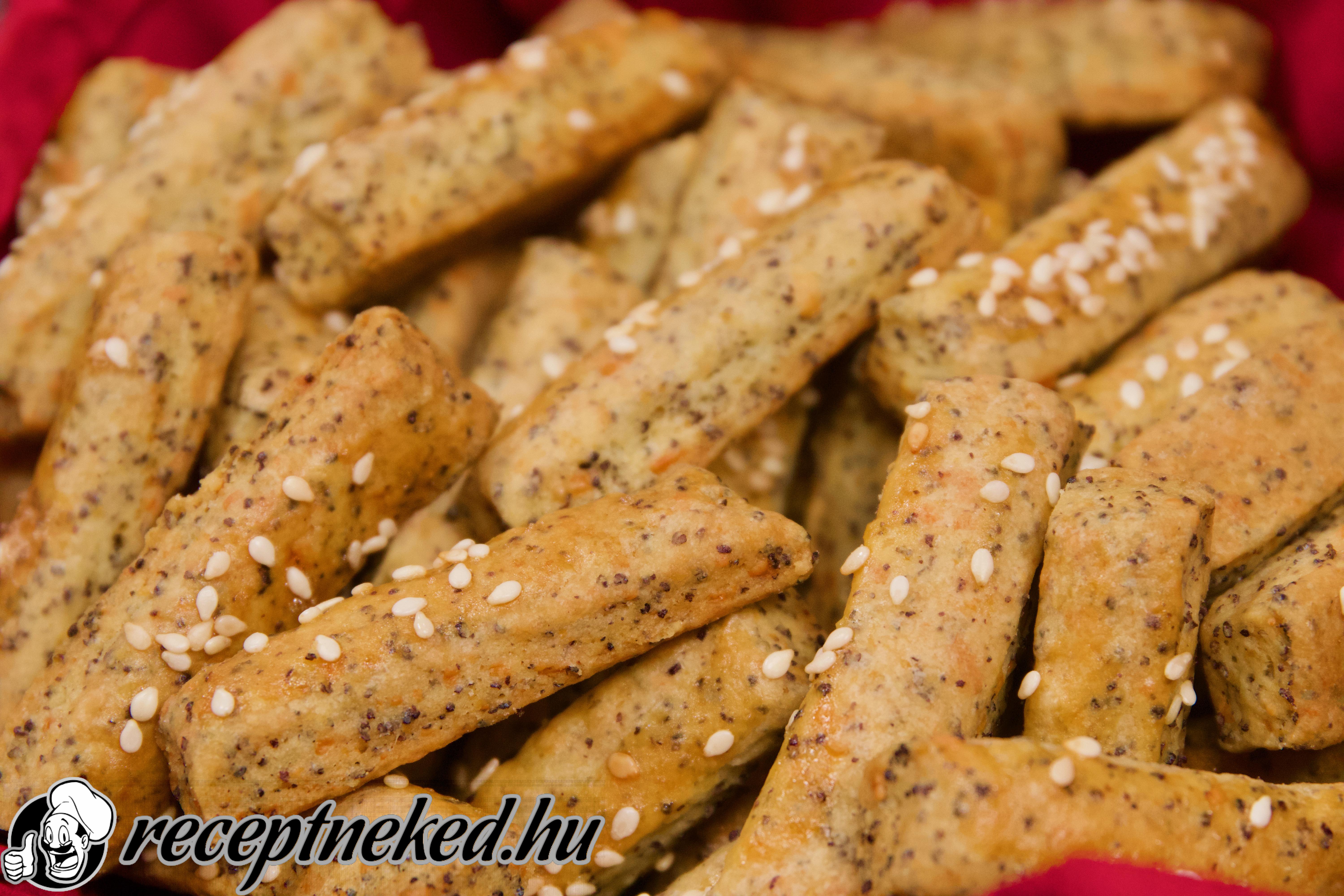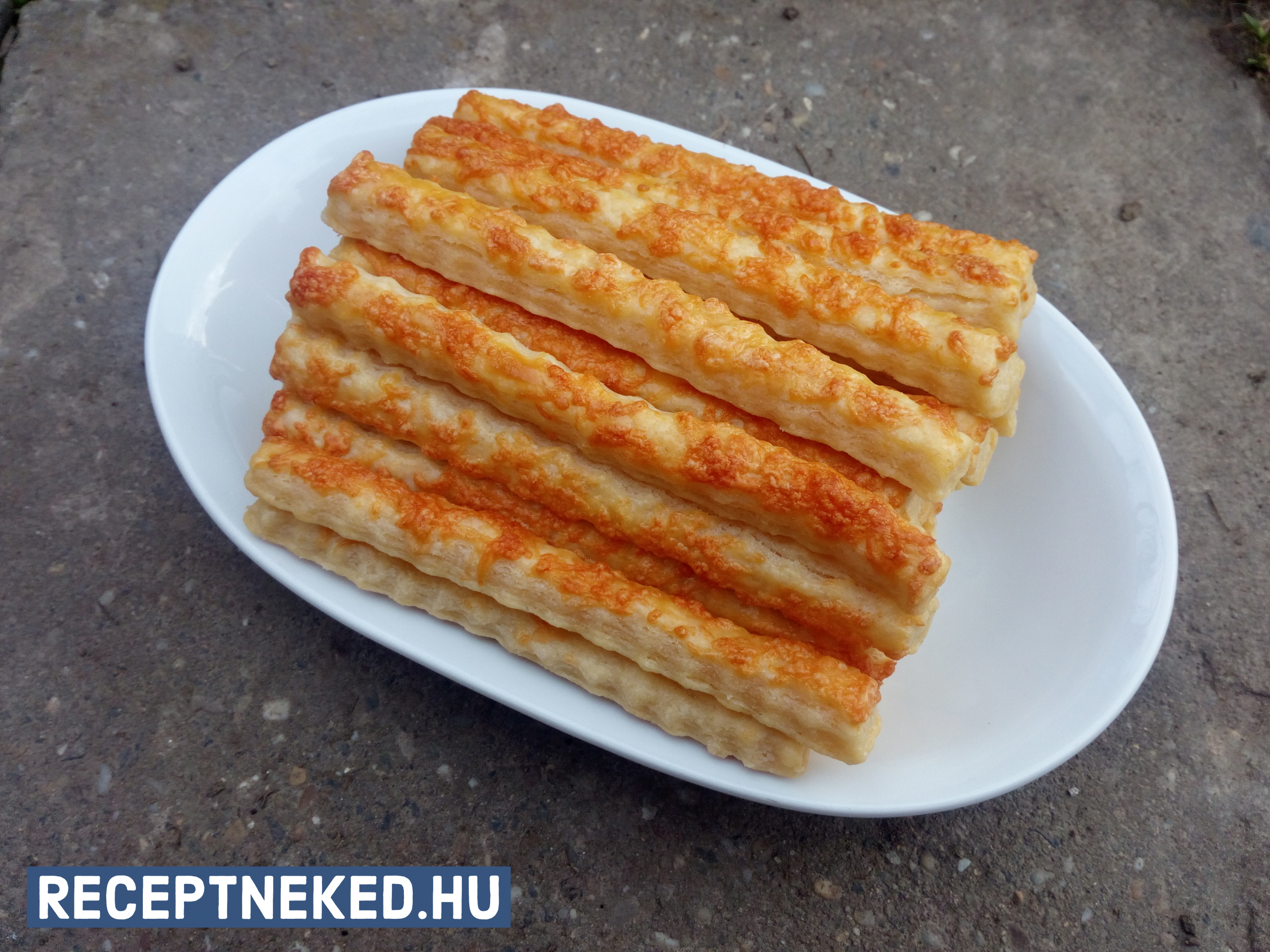 Egy derelyevágóval 10-12 cm hosszú és ujjnyi keskeny csíkokra vágjuk, majd szilikonos sütőpapírral bélelt lemezre tesszük és 20-22 perc alatt szép aranybarnára, ropogósra sütjük.