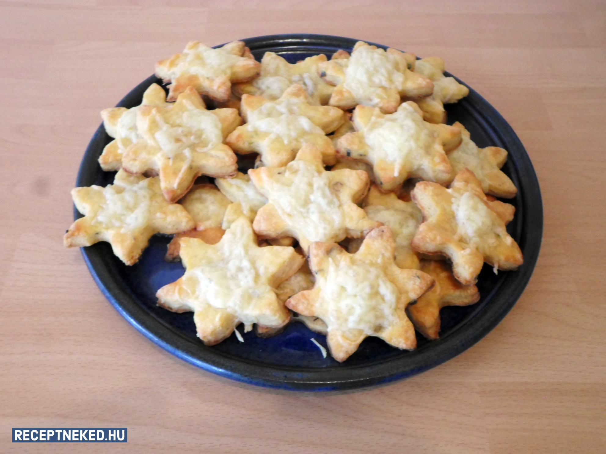 A reszelt sajttal összekeverjük a paprikát. A tésztát megszórjuk vele, majd csillag formával kiszúrjuk. A leeső részeket újból összegyúrjuk és kiszaggatjuk vagy derelye vágóval rudakat vágunk belőle.