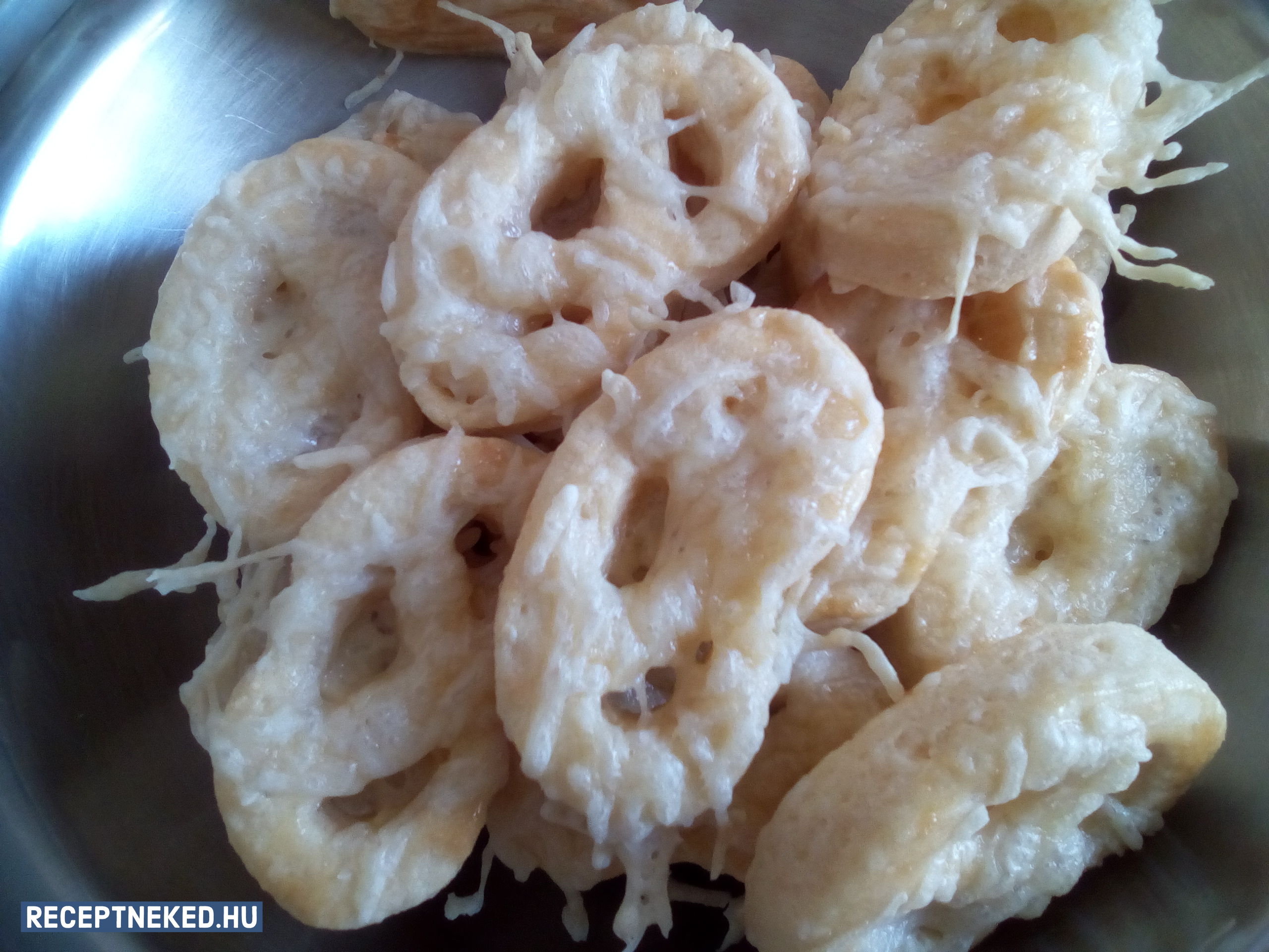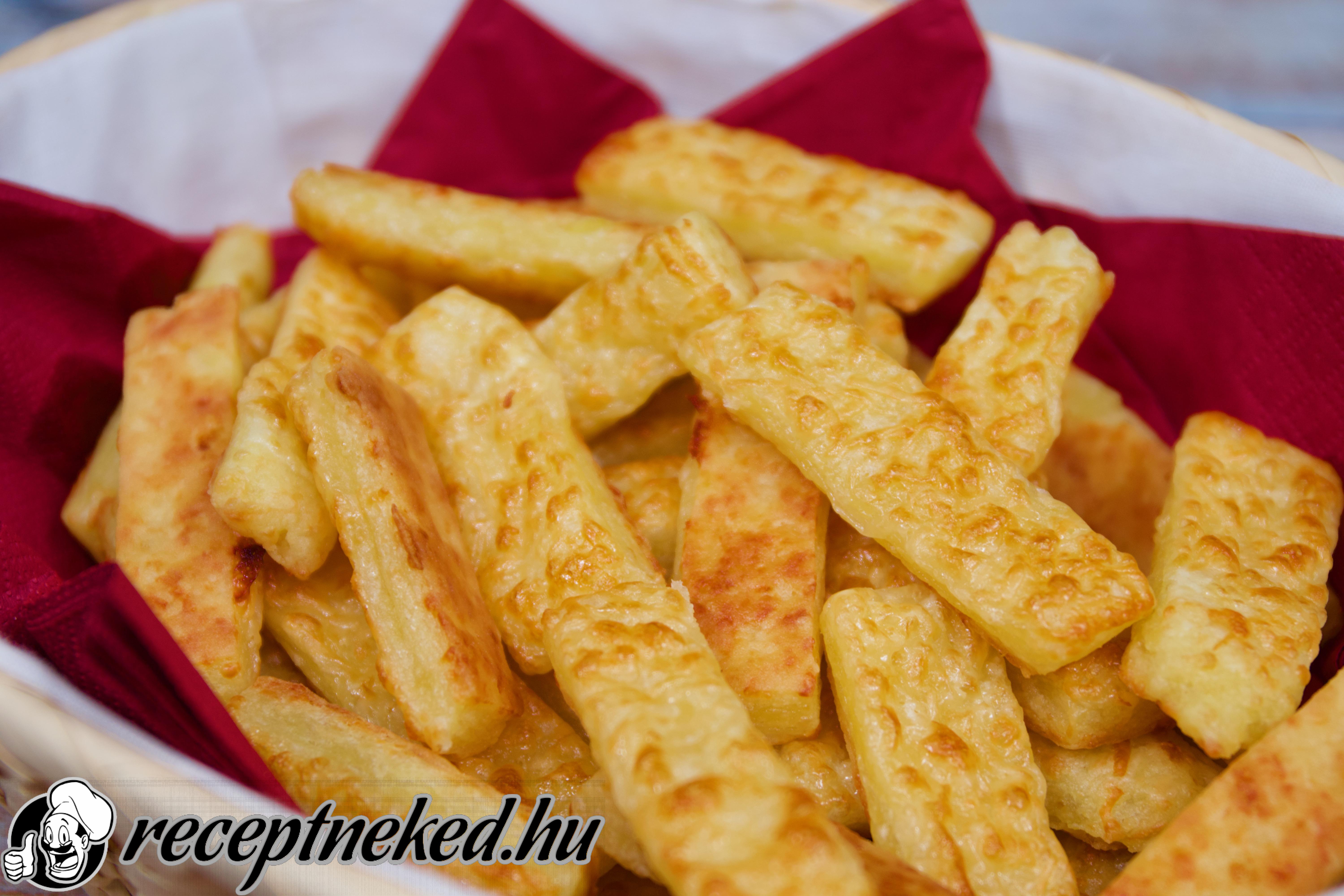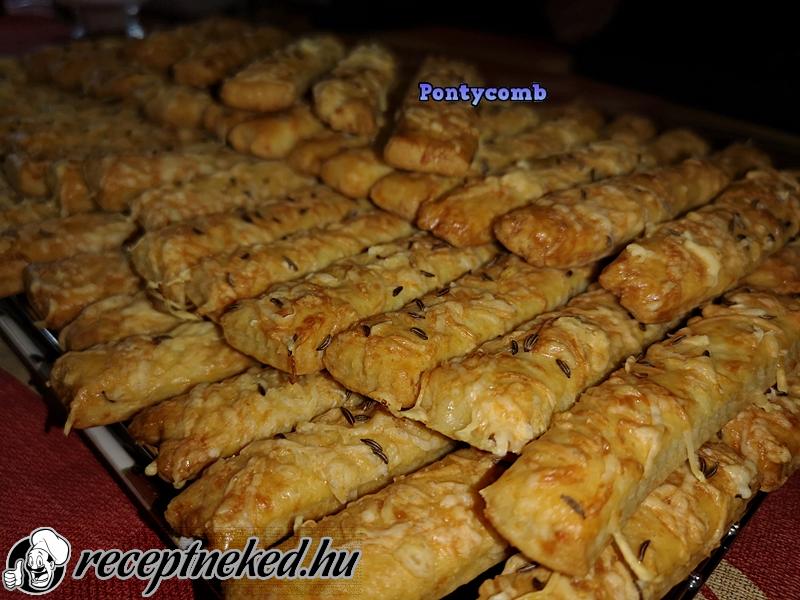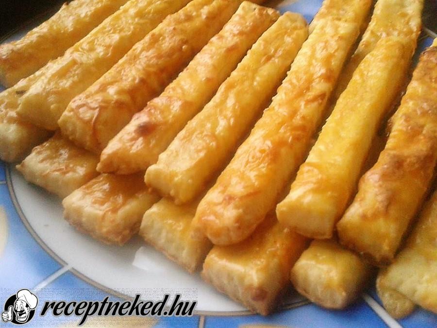 Derelyevágóval vékony rudakat szeletelünk belőle, sütőpapírral borított tepsibe tesszük és 180 °C-ra előmelegített sütőben 15 perc alatt aranybarnára sütjük.