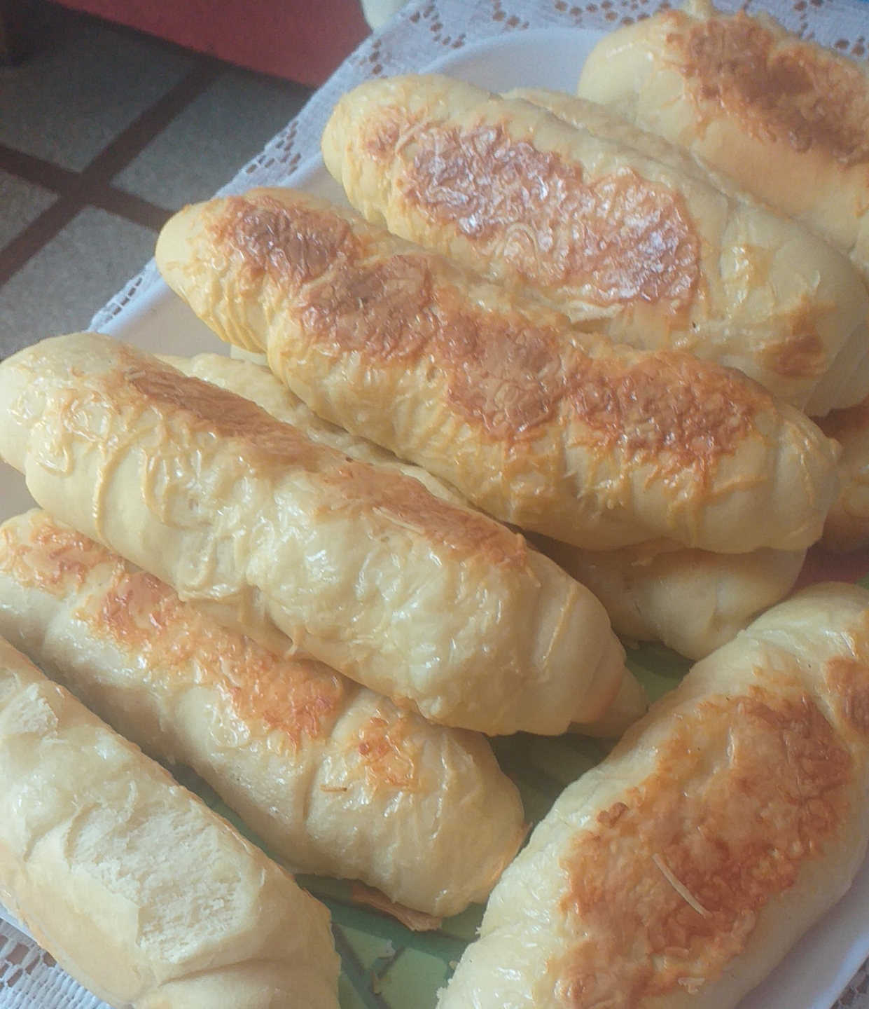 A tésztát kinyújtjuk vékonyra, megszórjuk reszelt sajttal, összehajtogatjuk, majd újrakelesztjük.