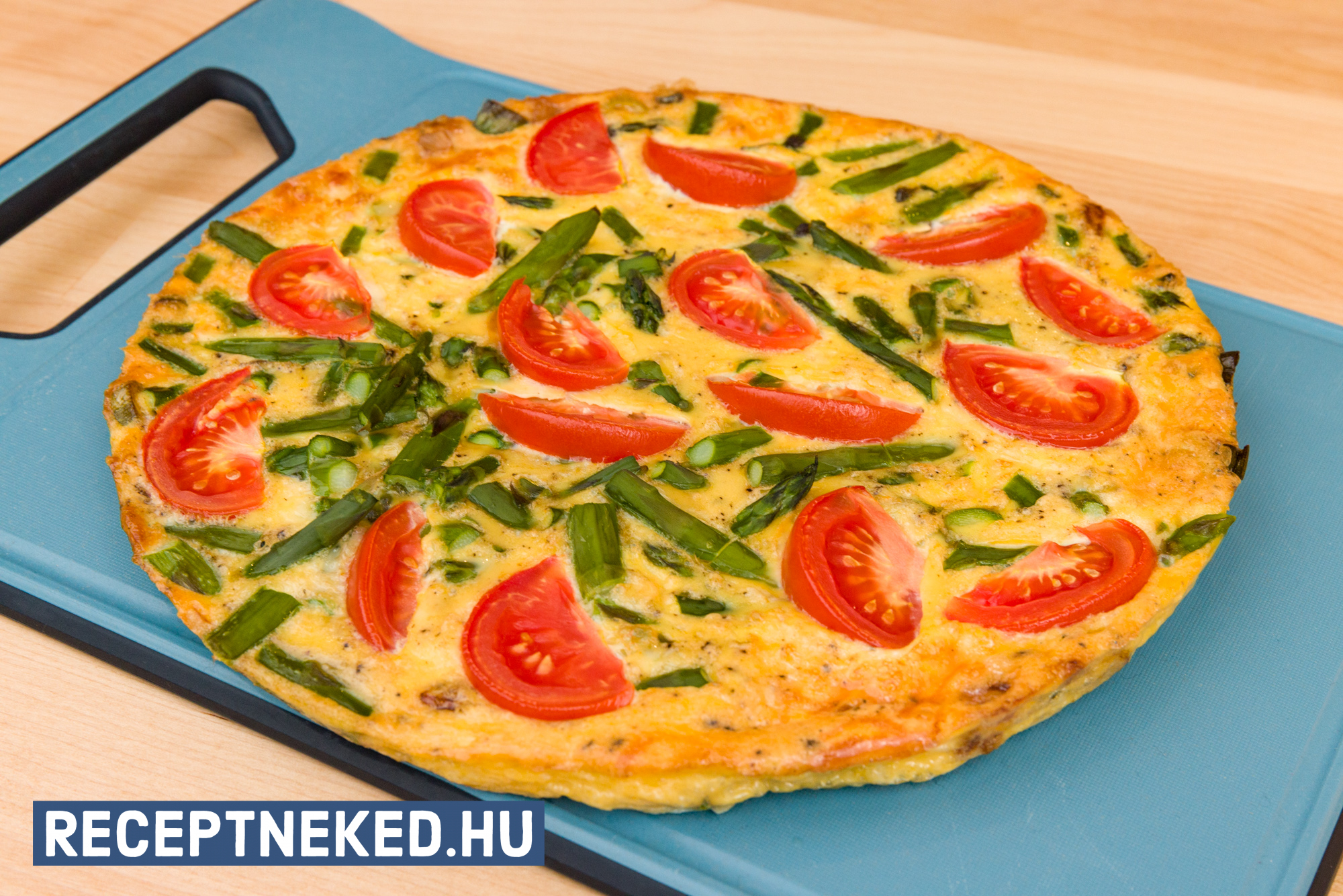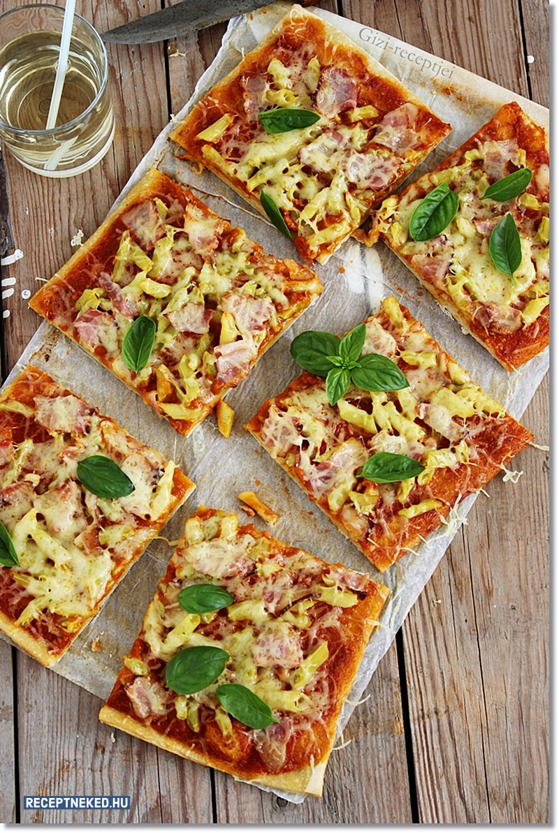 Ezután egyenletesen kanalazzuk rá a fűszeres krémet a pizzatésztára, majd rakjuk rá a spárgát is.