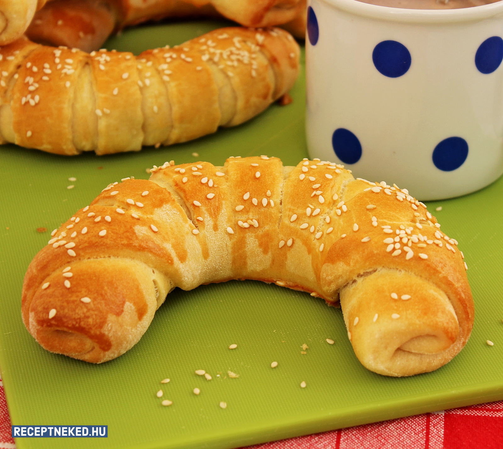 Bekapcsolom a sütőt 200 fokra és 10-15 perc alatt aranybarnára sütöm a kifliket.