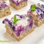 Az alapot vegyük ki a hűtőből és egyenletesen simítsuk bele a sajttortás részt, majd kanalazzuk rá az áfonyaszószt. Tálalás előtt legalább 3-4 órán át tároljuk hűtőben.