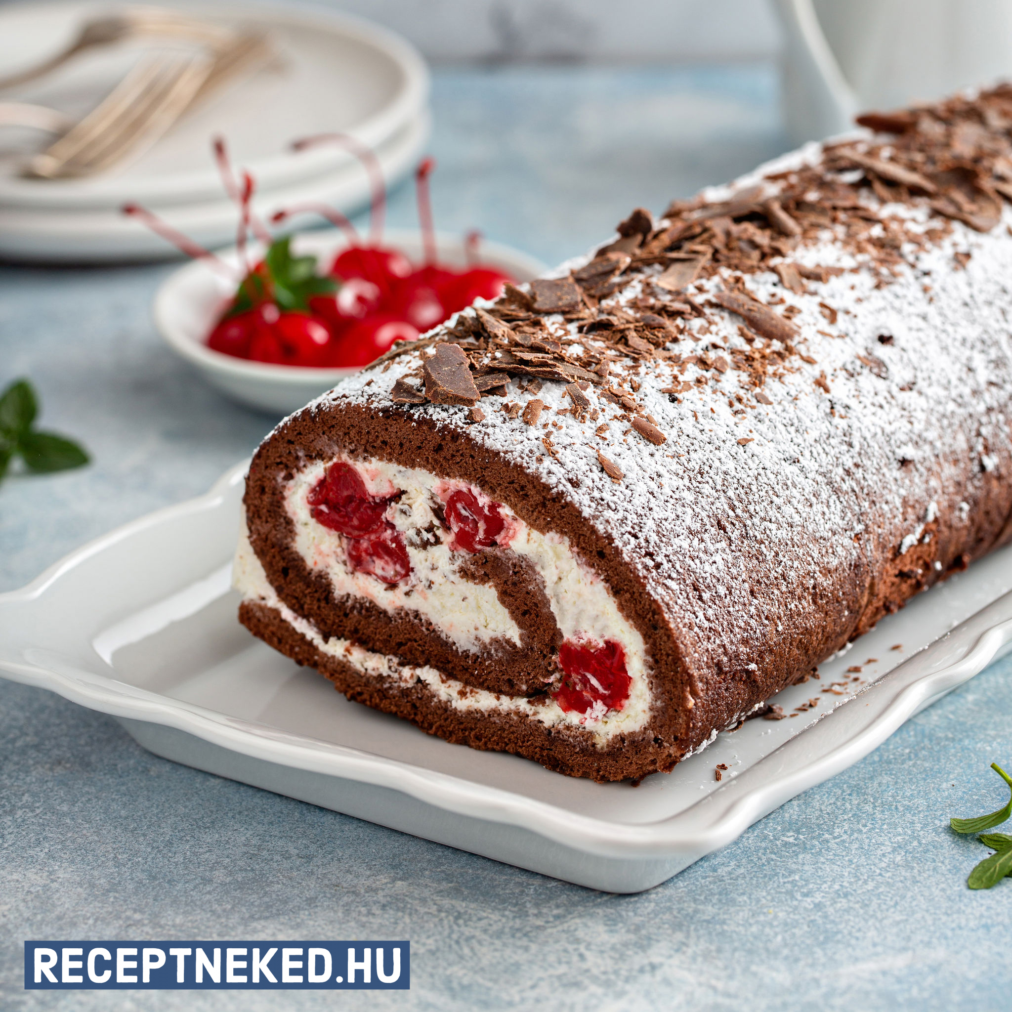 A rövidebb oldala mentén, a folpack segítségével feltekerjük a roládot, majd éjszakára hűtőbe vagy ideg helyre tesszük a maradék krémmel együtt.
