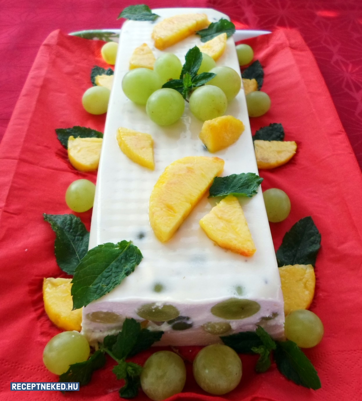 A zselatint mikróban felolvasztjuk, majd a joghurtos krémbe keverjük. A barack felét felkockázzuk és azt is a krémbe keverjük.