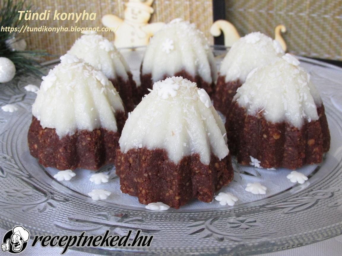 A piramis alját kókuszreszelékbe nyomjuk, majd rátesszük egy tányérra vagy tálcára, levesszük róla a formát, majd szórunk még rá kókuszt.