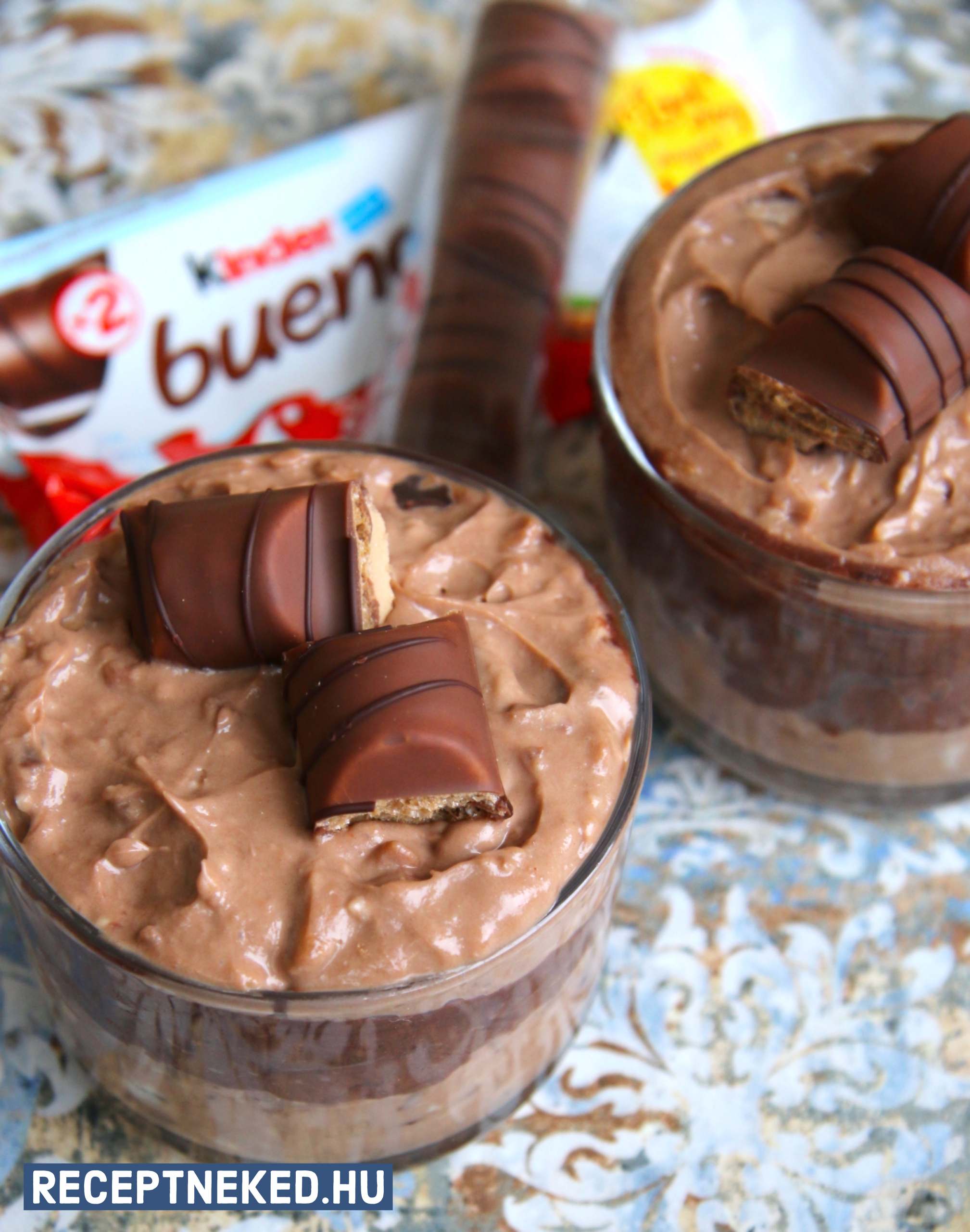 A tejszínből kemény habot verünk és a csokoládés krém tetejére halmozzuk. Megszórjuk csokireszelékkel és tört mogyoróval díszítjük.