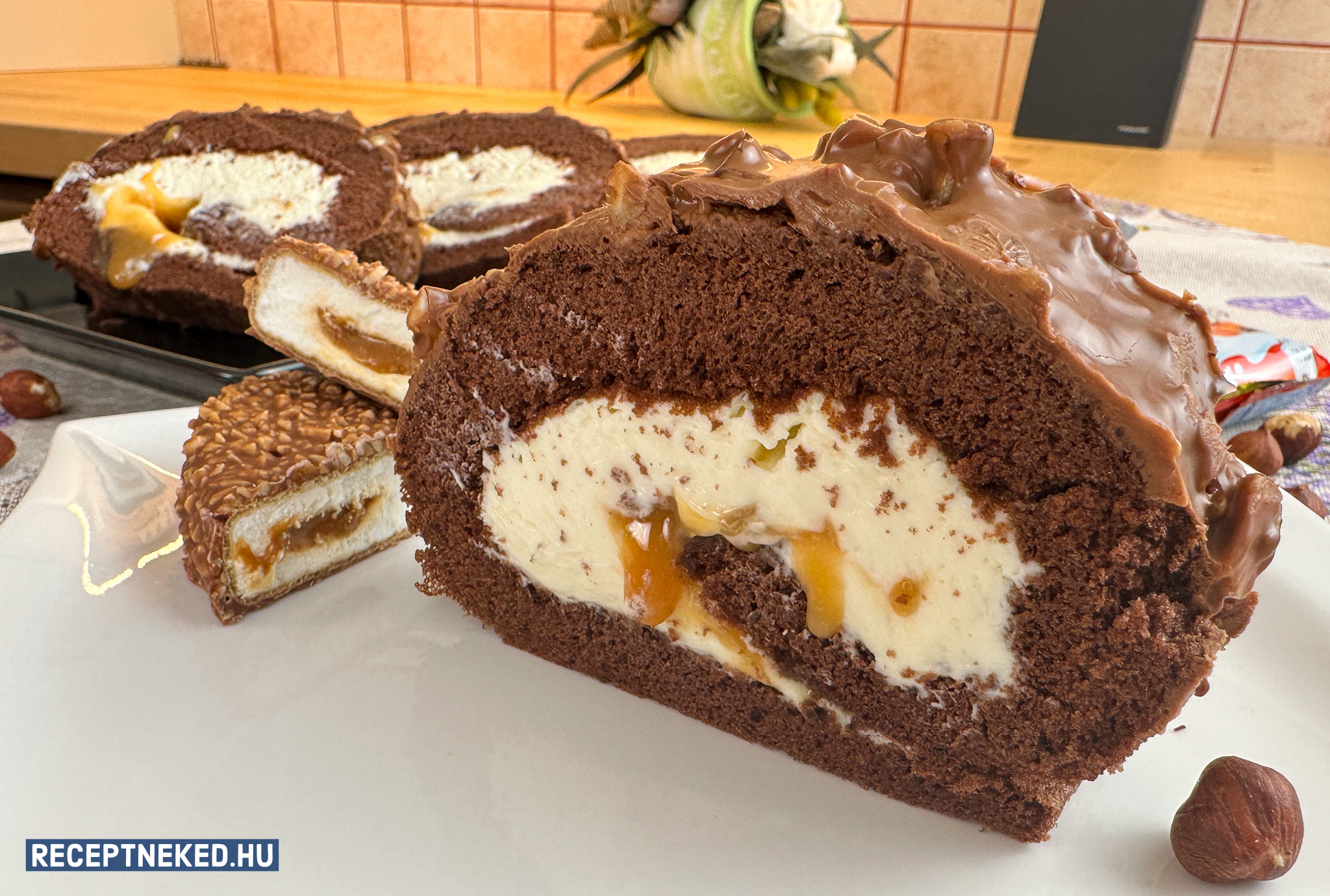 Másnap vegyük ki a tálból, szedjük le róla a fóliát és vonjuk be az egészet a megmaradt csokoládéval. Szórjuk meg mindenhol mogyoróval és hagyjuk teljesen megkötni.