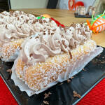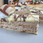 Egy éjszakára hűtőbe tesszük, majd másnap szeleteljük. A szeleteket ízlés szerint díszítjük tejszínhabbal, mogyoró krokanttal és/vagy olvasztott fehér csokoládéval.
