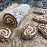 A tekercset hűtőbe vagy hűvös tesszük legalább 2 órára, hogy szépen megdermedjen és jól szeletelhető legyen.