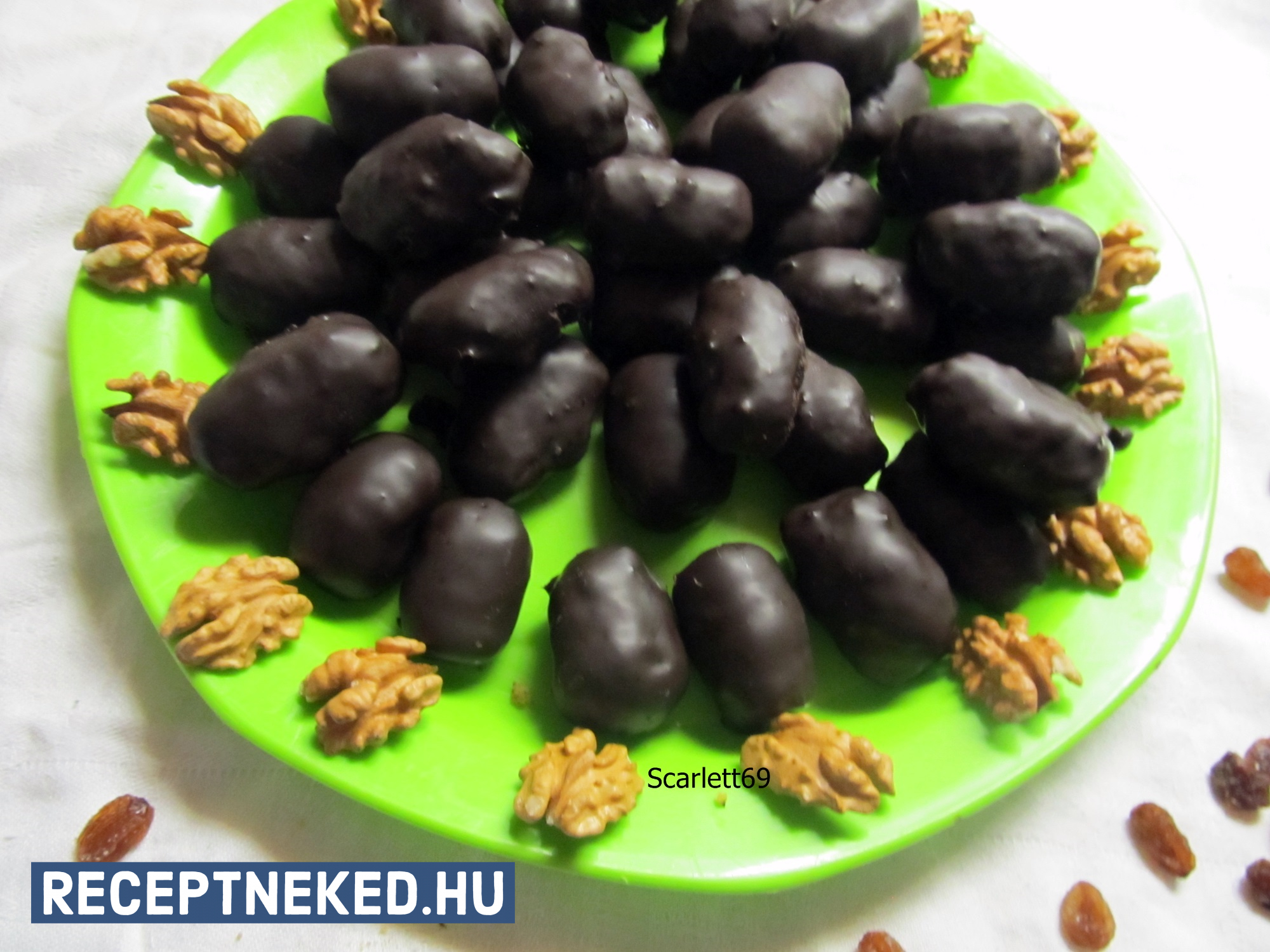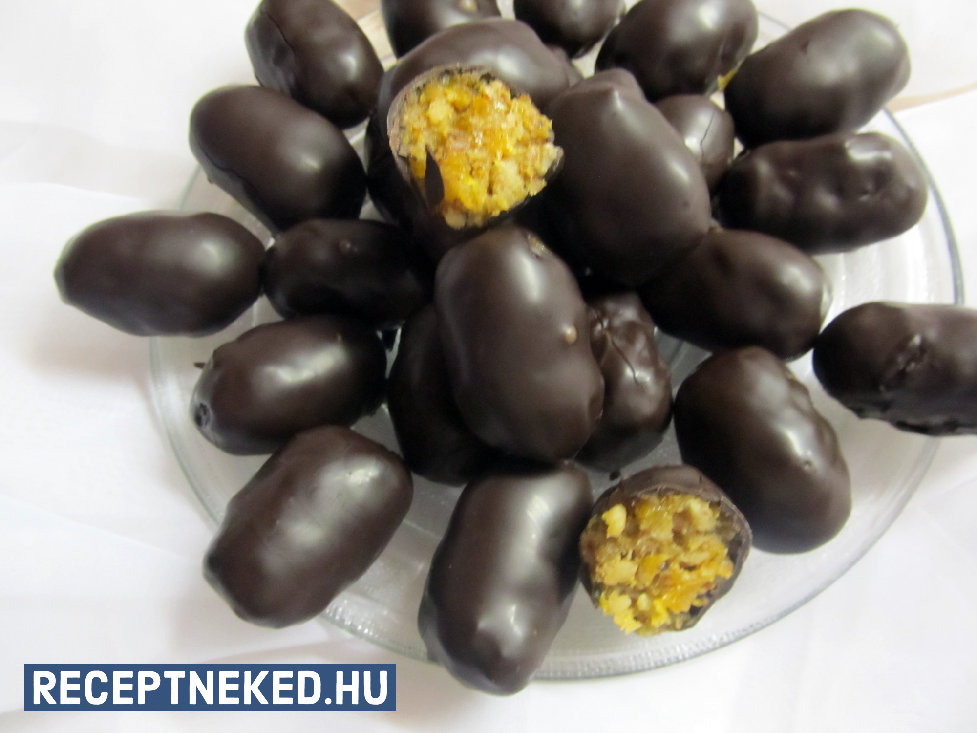 Az étcsokoládét olvasszuk fel, majd óvatosan forgassuk bele a kézzel formázott szaloncukrokat. Tegyük egy sütőpapírral bélelt tepsibe, majd tegyük a hűtőbe, míg szépen megszilárdulnak.
