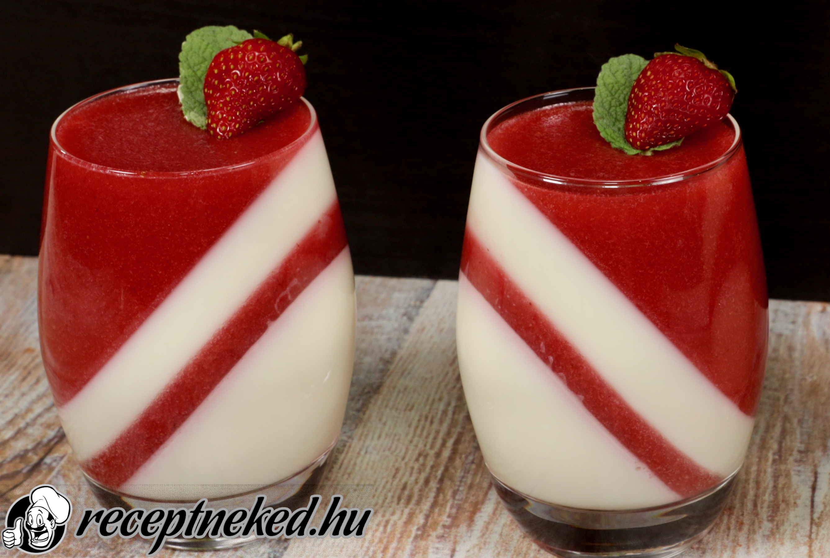 Az egyik felébe elkeverünk 1 dkg zselatint, felmelegítjük és a megdermedt tejszínre öntjük elosztva 12 felé, majd visszatesszük a hűtőbe.