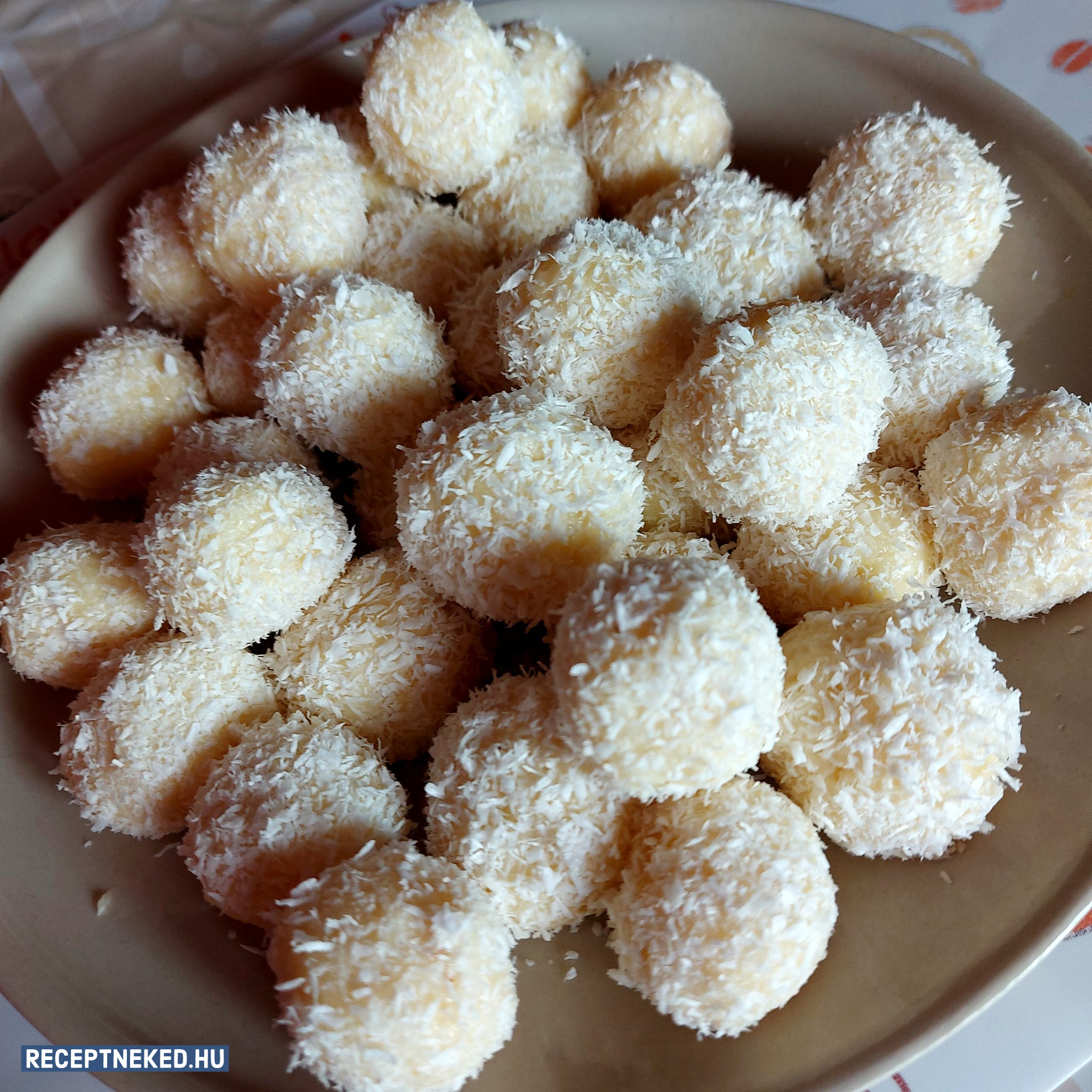 Ha kihűlt, golyókat formázunk a masszából és meghempergetjük kókuszreszelékben.