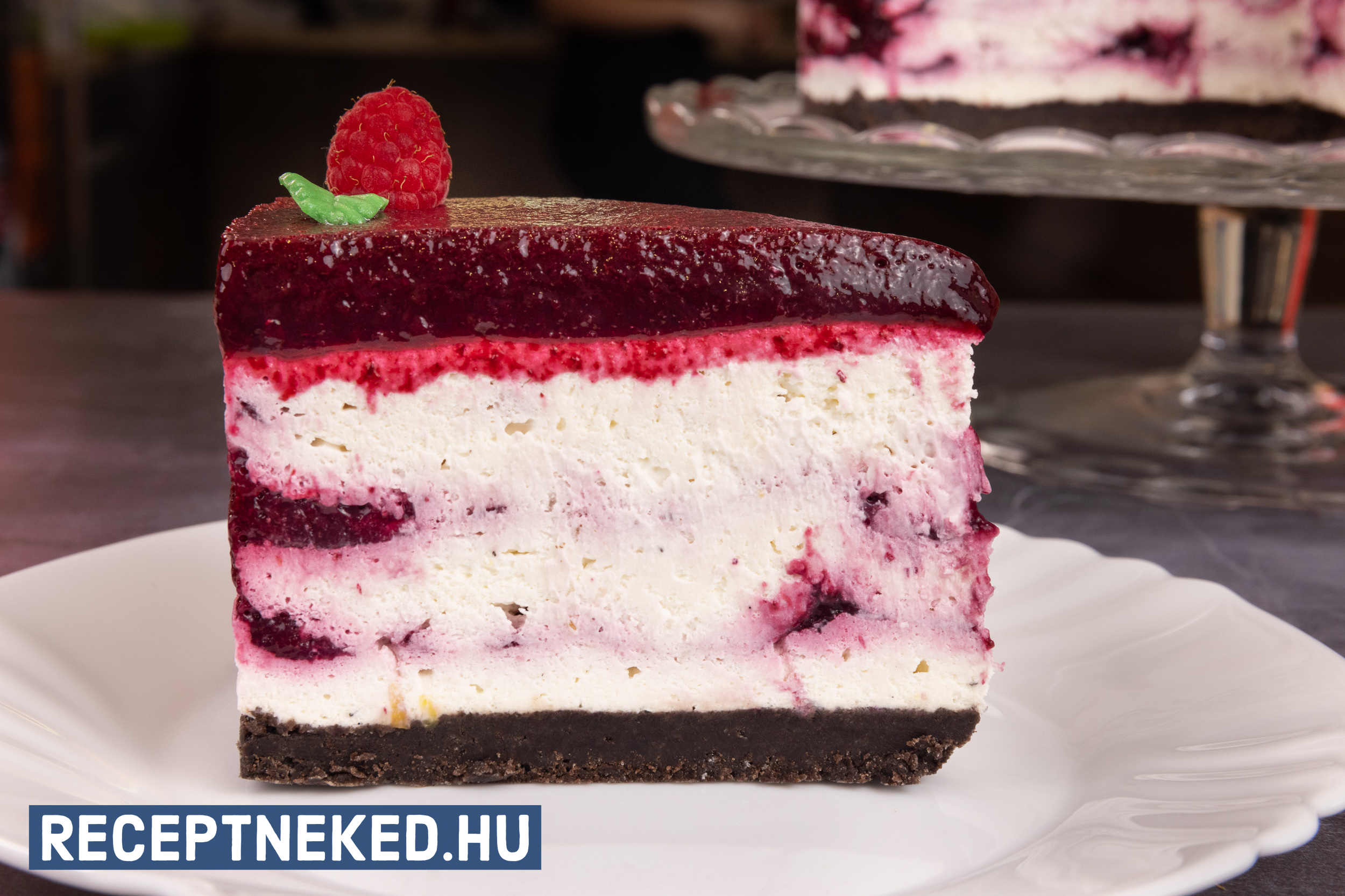 Díszítsük a sajttortát a szederszósszal, tejszínhabbal valamint szeder és málnaszemekkel ízlés szerint.