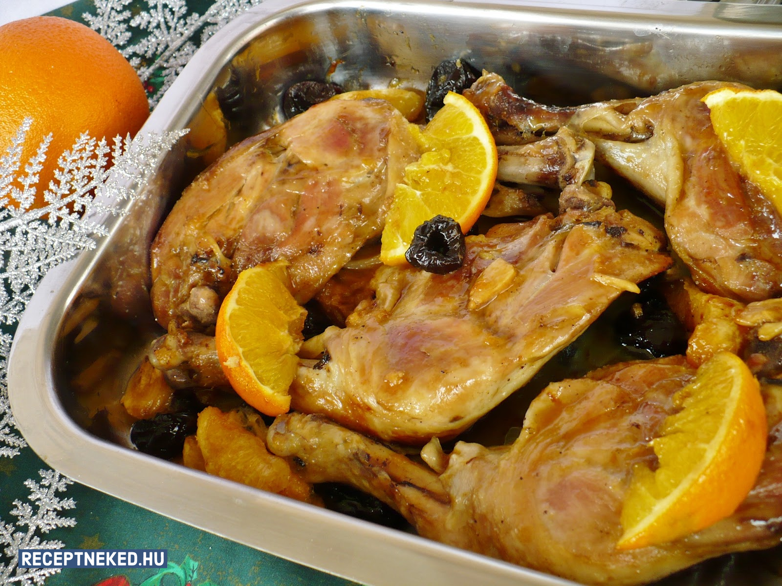 A csirkecombokat tepsibe vagy sütőtálba sorakoztatjuk, és sütőbe tesszük úgy, hogy az edény tetejét vagy alufóliával, vagy egy hasonló méretű tepsivel, esetleg hőálló tálcával borítjuk. Előmelegített sütőben először 15 percig sütjük, majd a félretett keverékkel a tetejét átkenjük. Tovább sütjük, és közben többször lekenjük. Az utolsó kenegetés után tető nélkül sütjük, hogy a csirkecomb bőre szép színes és ropogós maradjon.