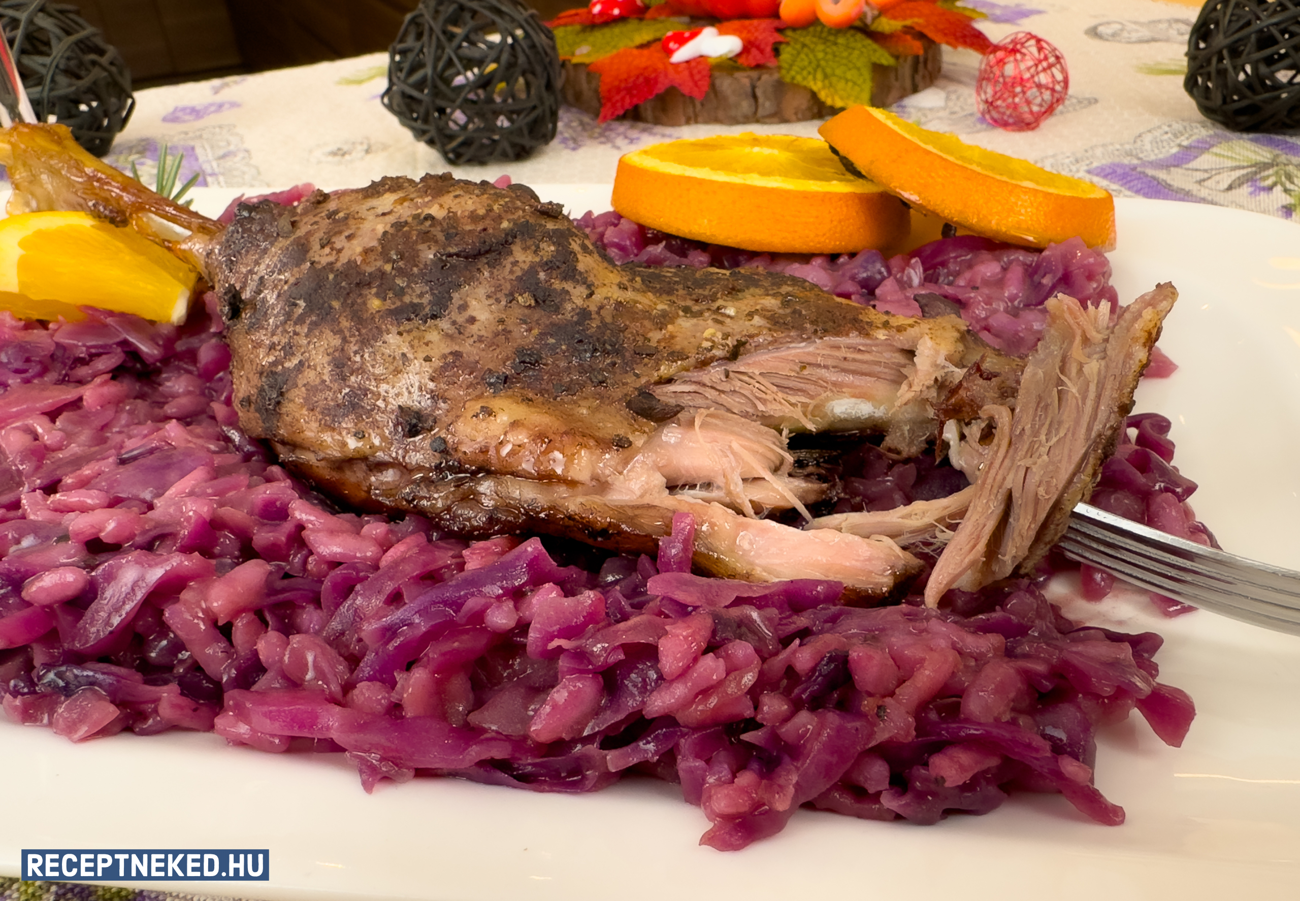 Ha a zöldséges keverék felforrt, akkor elzárjuk alatta a tüzet és egy nagyobb tepsibe áttesszük és elterítjük. A főzőlevet is aláöntjük! A combokat rátesszük a lencsére és rámerjük a szaftot, a kisült zsiradékot pedig ráöntjük a lencsére.