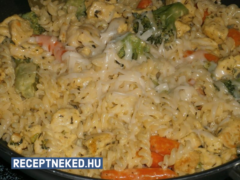 A tejfölt öntsük egy nagy tálba, keverjük ki a tojásokkal, sózzuk, borsozzuk és adjuk hozzá a fűszerkeveréket. Tegyük a pulykamell csíkokat és a brokkolikat a tálba és forgassuk össze a tejfölös szósszal.