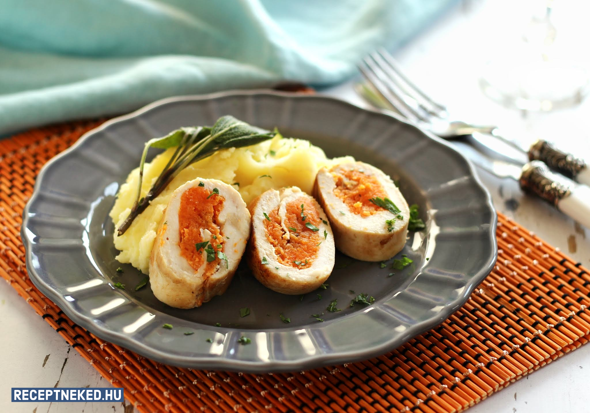 Csirkecomból is elkészíthetjük. Akkor a combok bőre alá helyezzük a tölteléket.