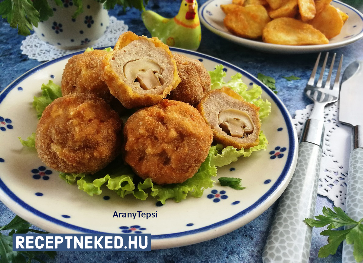 Ezután hagyományos módon panírozzuk a nyársakat: liszt, felvert tojás, zsemlemorzsa.
