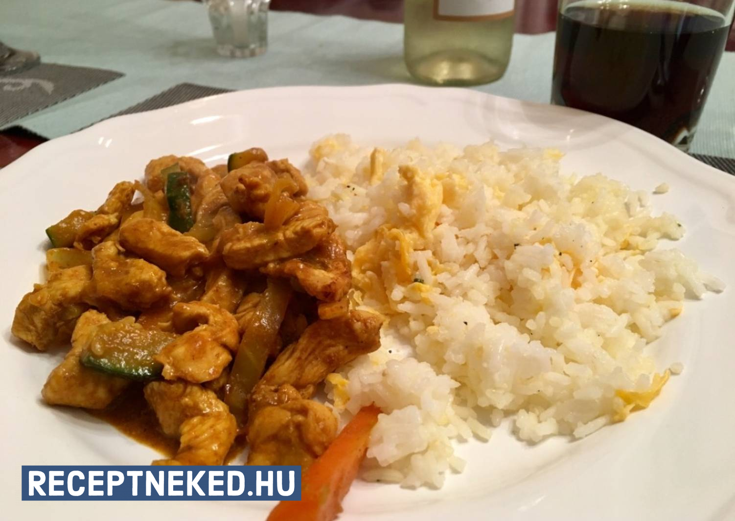 Tejfölös csirkecsíkok rizzsel és salátával recept