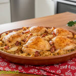 Tejszínben sült zöldborsós, baconos csirke recept