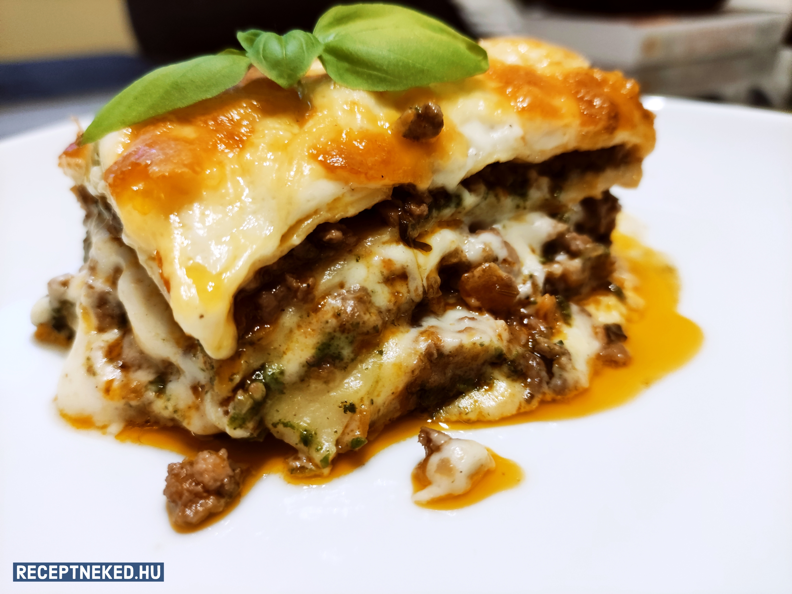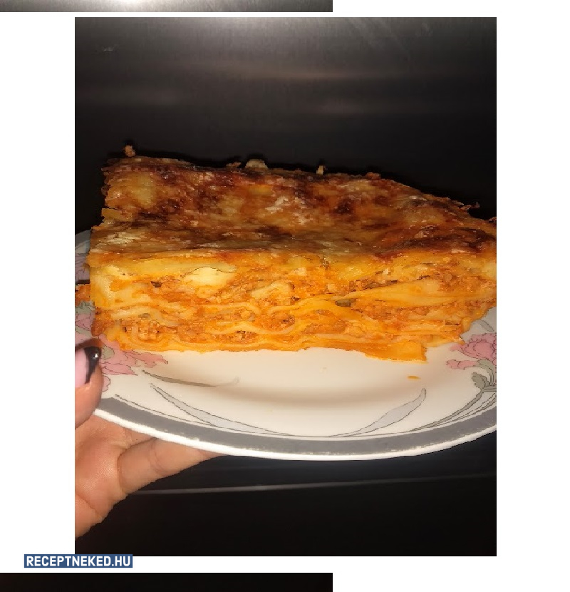 A tepsit kivajazzuk, megkenjük az alját besamellel és rárakunk egy sor nyers tésztát-ragu-sajt. Ezt ismételjük 3-4x.