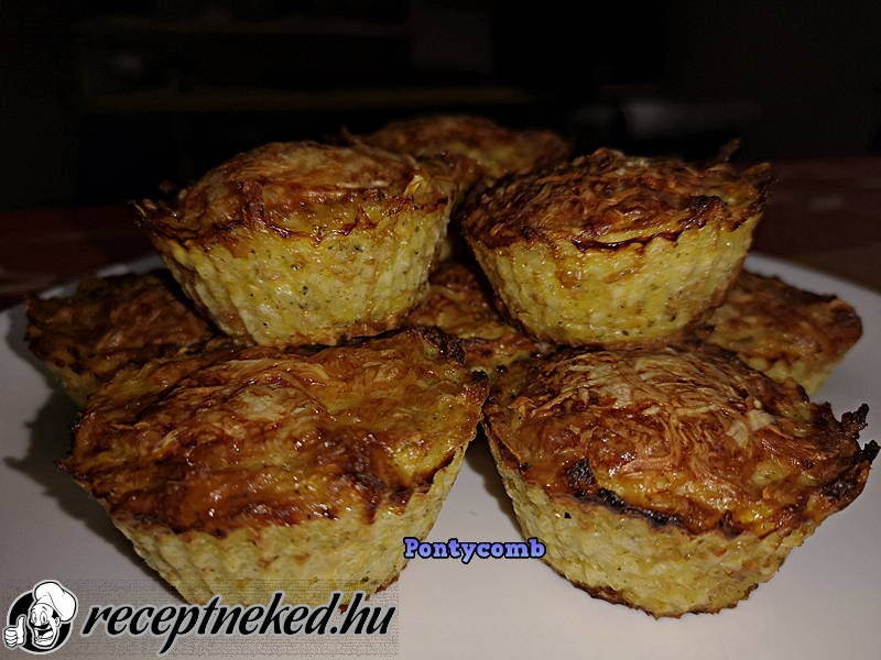 A muffin formát kivajazzuk, majd egy villa segítségével feltekerjük a tésztát és elosztjuk a formában.