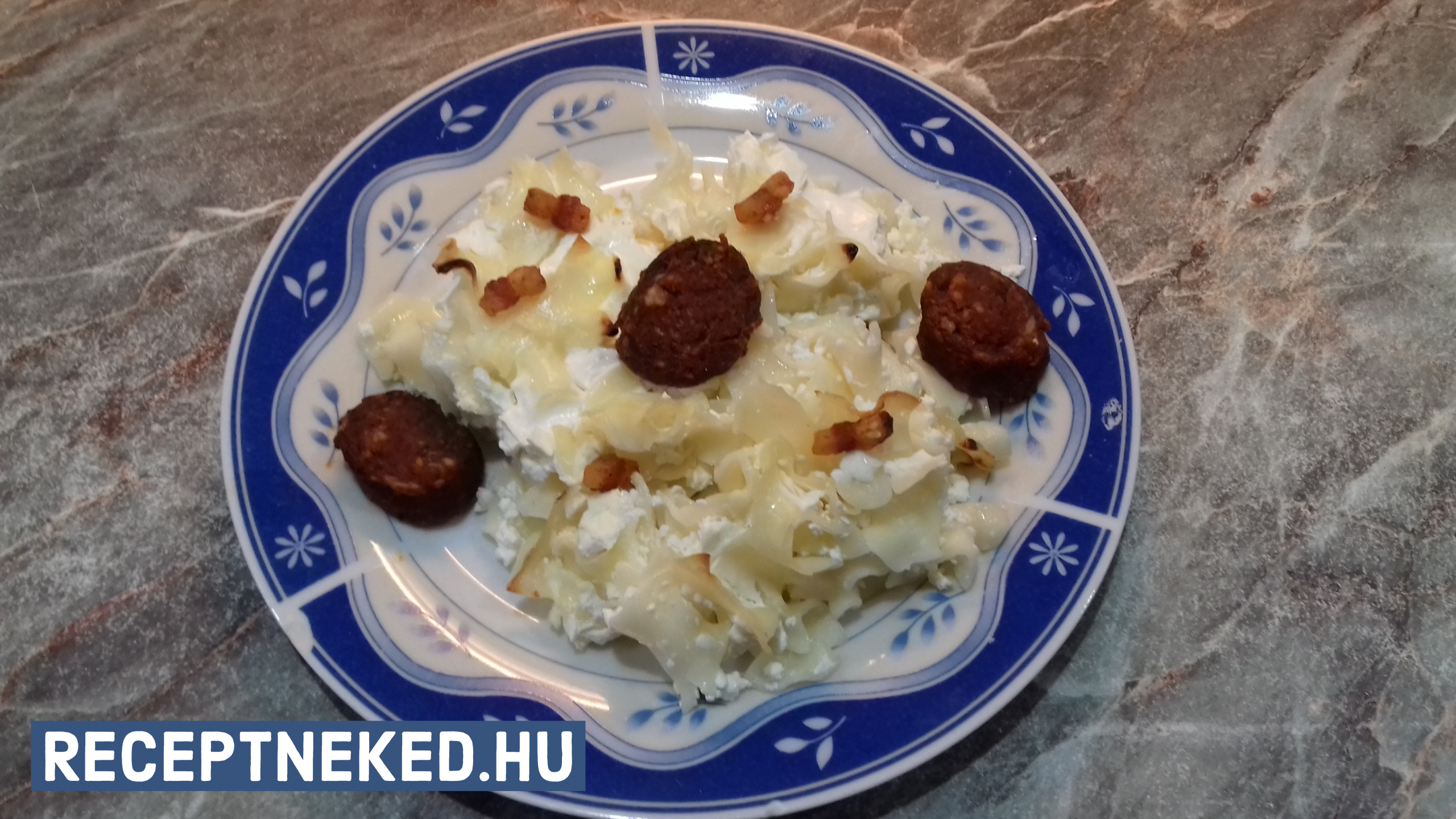 - 40 dkg száraz masni tészta (lehet fodros nagy kocka is)