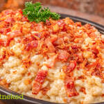Tálaláskor szórjuk meg a galuskákat a szalonna kockákkal, morzsoljunk rá juhtúrót és forrón kínáljuk az ételt.