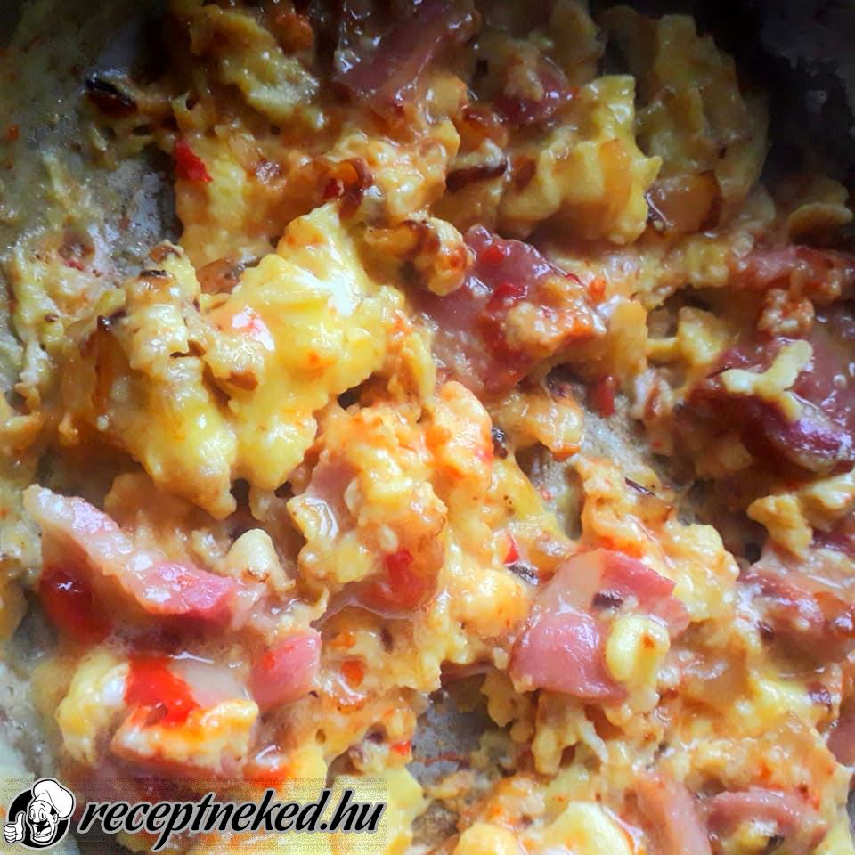 A hagymát apróra, a szalonnát kis kockákra vágjuk. A gombát alaposan megmossuk, felszeleteljük.