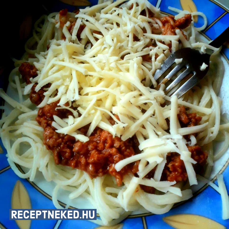 Tálaláskor a ragut a tésztára szedjük és reszelt sajttal jól megszórjuk.