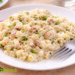 Hozzáadjuk a sajtot, majd ha elolvadt belekeverjük a kifőtt tésztát is.