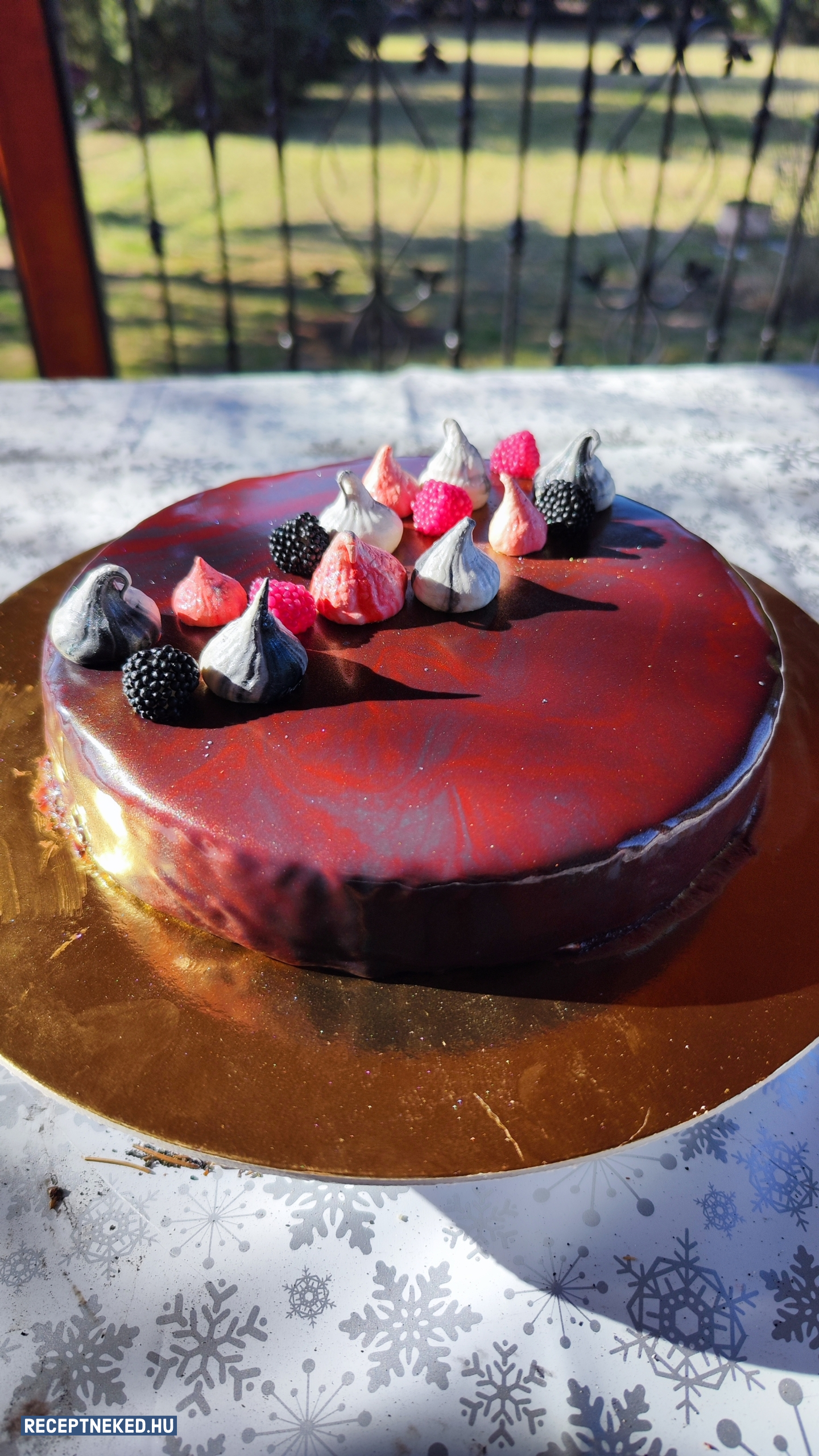 Áfonyás mousse tükörglazúrral és cukorkosárral recept